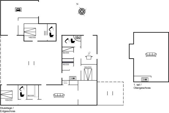 Der er i alt 6 soveværelser. Sovepladserne fordeler sig på: 6 sovepladser i dobbeltsenge. 1 soveplads i enkeltseng. 4 sovepladser i køjesenge. 2 af disse sovepladser befinder sig i et anneks.