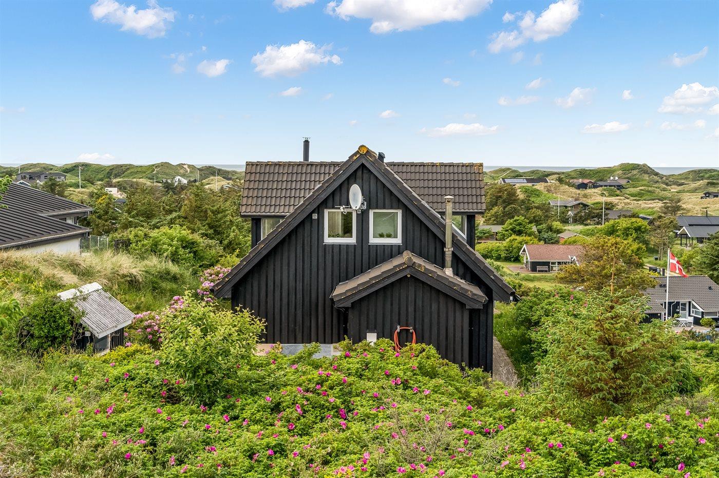 Med en meget god beliggenhed på en naturgrund kun 700 m fra vandet, højt hævet med panoramaudsigt over Blokhus by, udsigt til havet og området med klitter og græsarealer finder I dette sommerhus.