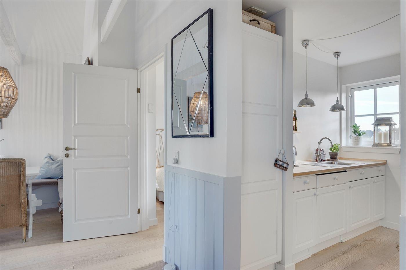Køkkenet er udstyret med 1 køleskab. Der er 4 induktionskogeplader, varmluftovn samt opvaskemaskine.