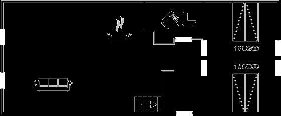 Køkkenet er udstyret med 1 køleskab. Der er 4 induktionskogeplader, varmluftovn samt opvaskemaskine.