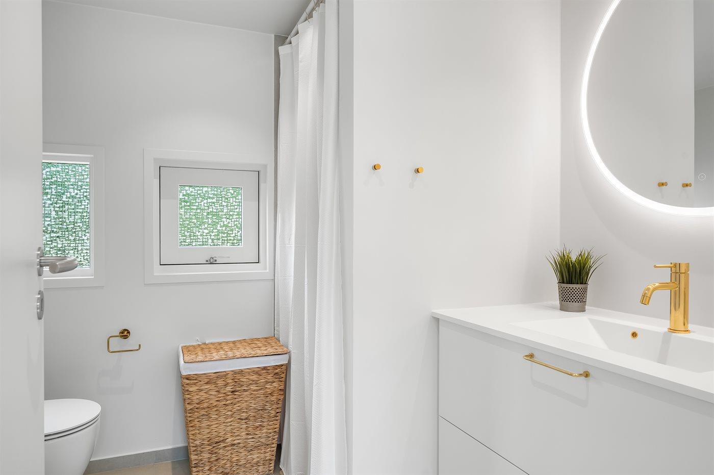 Der er 2 badeværelser med bruseniche og 2 toiletter. Der er gulvvarme på 2 badeværelser.