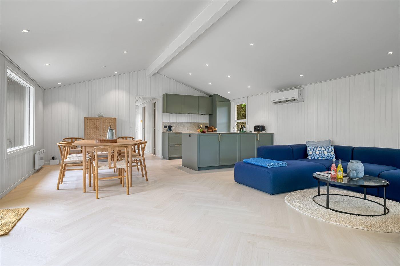 Huset er totalrenoveret og fremstår lyst, moderne og indbydende med sans for detaljen. Alt interiør er nøje udvalgt for at sikre både komfort og stil, og du vil hurtigt føle dig hjemme i de smukke rammer.