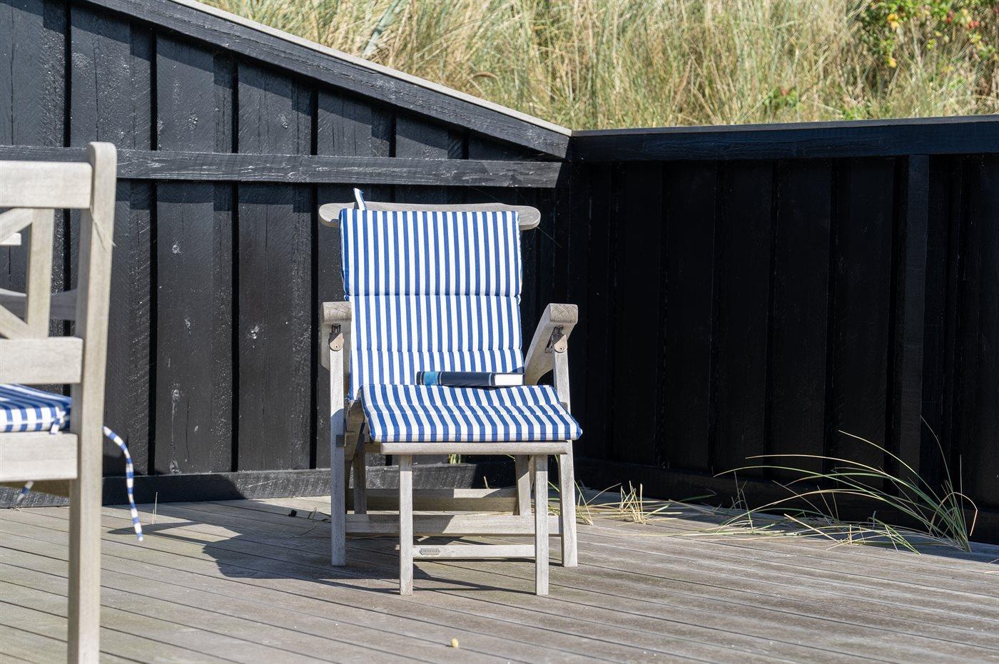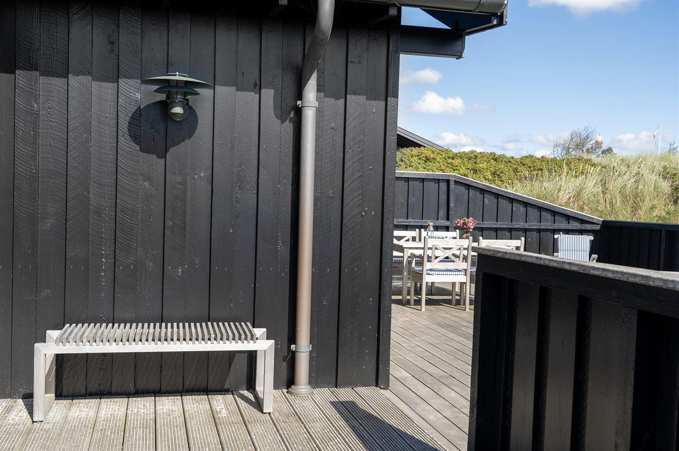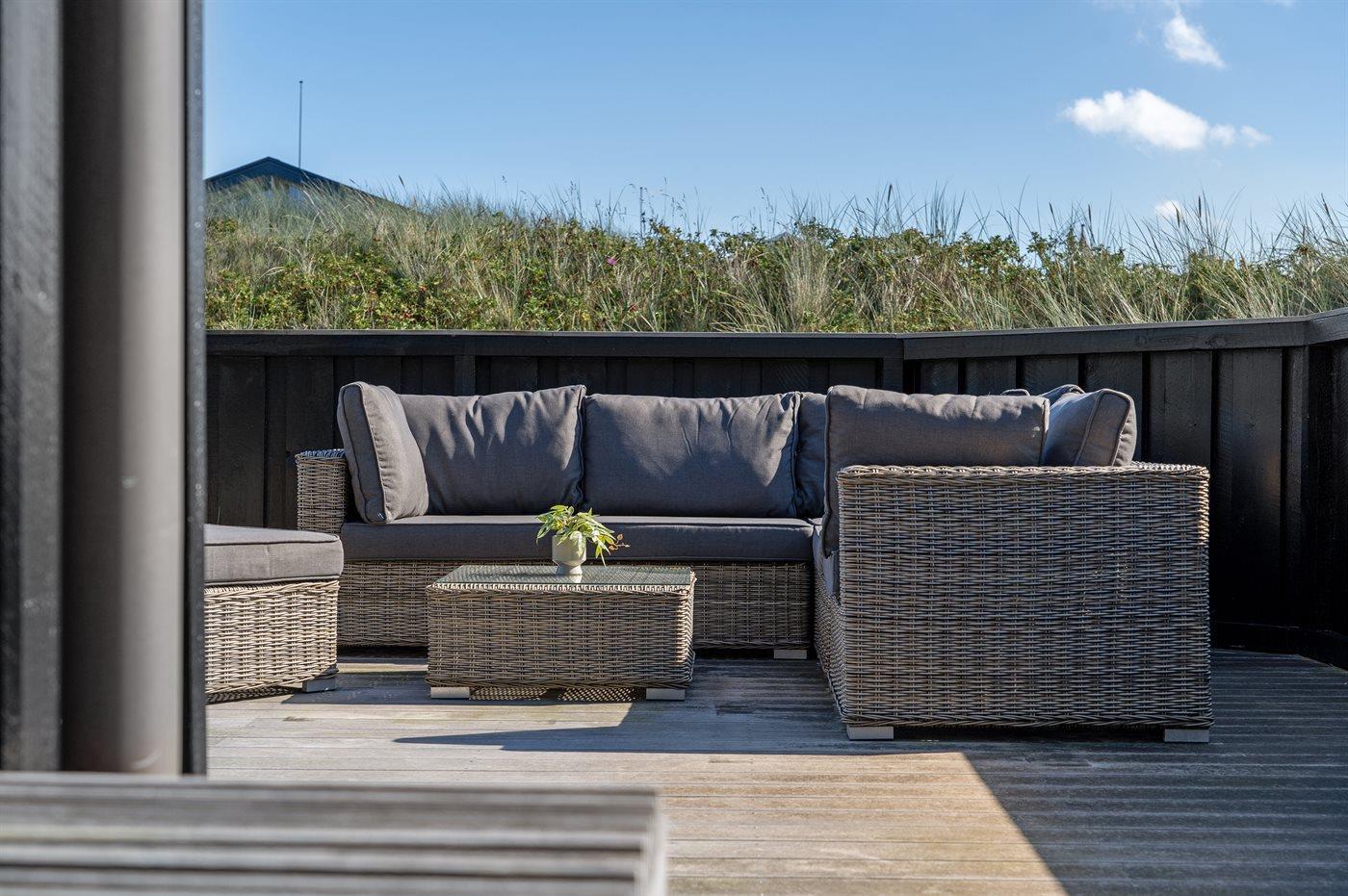 Ferieboligen er beliggende på en 1332 m² stor klitgrund. Der er 150 m til havet. Nærmeste forretning er beliggende i en afstand af 600 m. Til ferieboligen hører åbent terrasseareal. Desuden er der overdækket terrasse. Der er redskabsrum. Grill til rådighed. Der er carport til rådighed. Parkering ved ferieboligen.