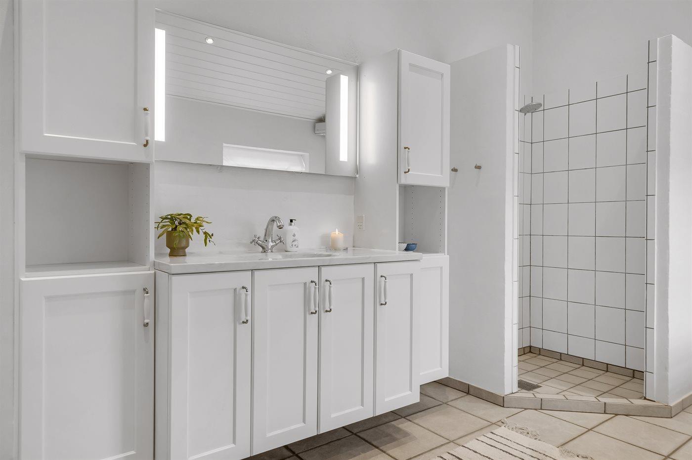 Der er 2 badeværelser med bruseniche og 2 toiletter. Der er gulvvarme på 2 badeværelser. Dampkabine.
