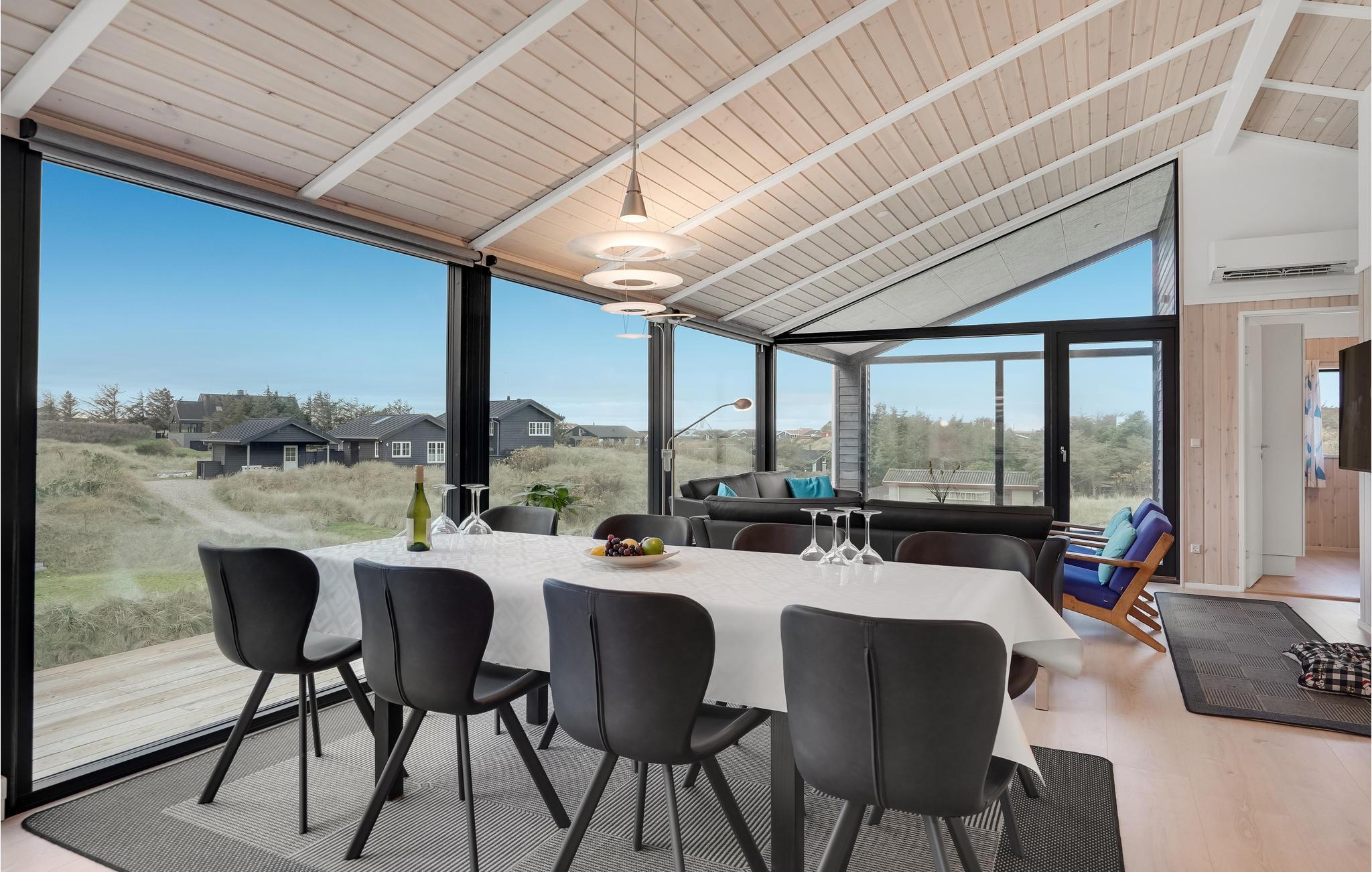 Alt er gennemtænkt i dette moderne hus, så I kan nyde den storslåede udsigt. Fra hvert værelse har I en smuk udsigt til de fantastiske omgivelser. I opholdsrummet vil den sydvendte glasvæg sørge for et fantastisk lysindfald, her kan I slappe af i behagelige lænestole og lade blikket vandre over klitlandskabet. I kan også nyde jeres måltider foran dette vidunderlige panorama. Man sidder i læ på terrassen, så her behøver I sjældent bekymre jer om vestenvinden.