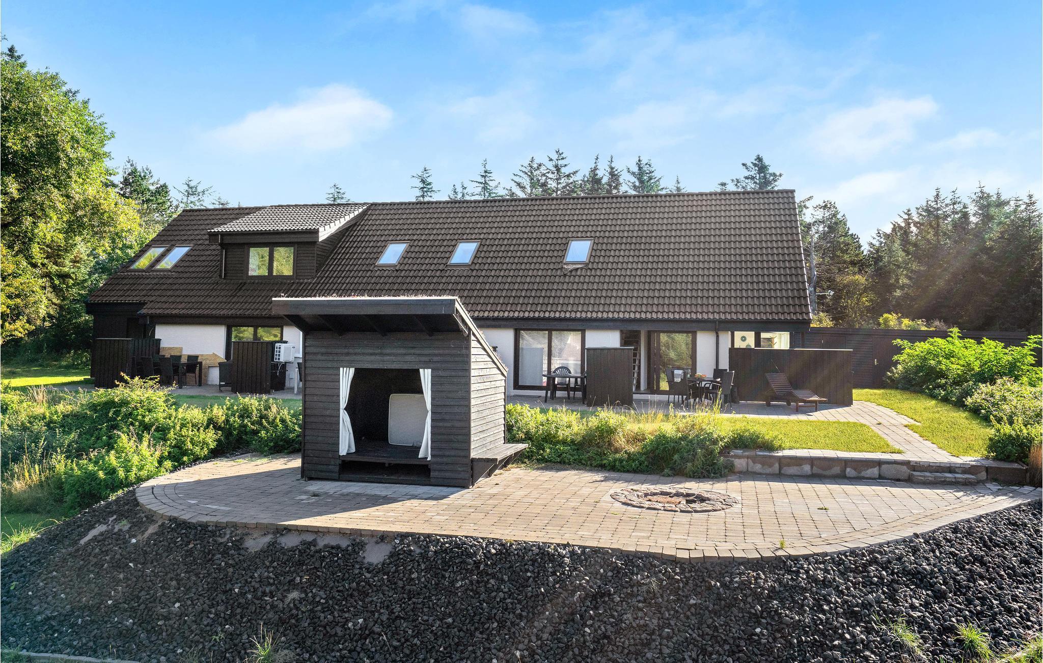 På en naturgrund tæt ved Vesterhavet ligger dette store skønne feriehus med en fin og velindrettet lejlighed. Her får I en hyggelig base, hvor I kan hvile ud mellem alle de oplevelser, der venter jer på jeres ferie i Nordjylland. I kan se frem til moderne faciliteter, lyse rum, en dejlig udestue, altan samt en fælles have med læ, hvor I kan samles med jeres børn efter en lang, spændende dag.