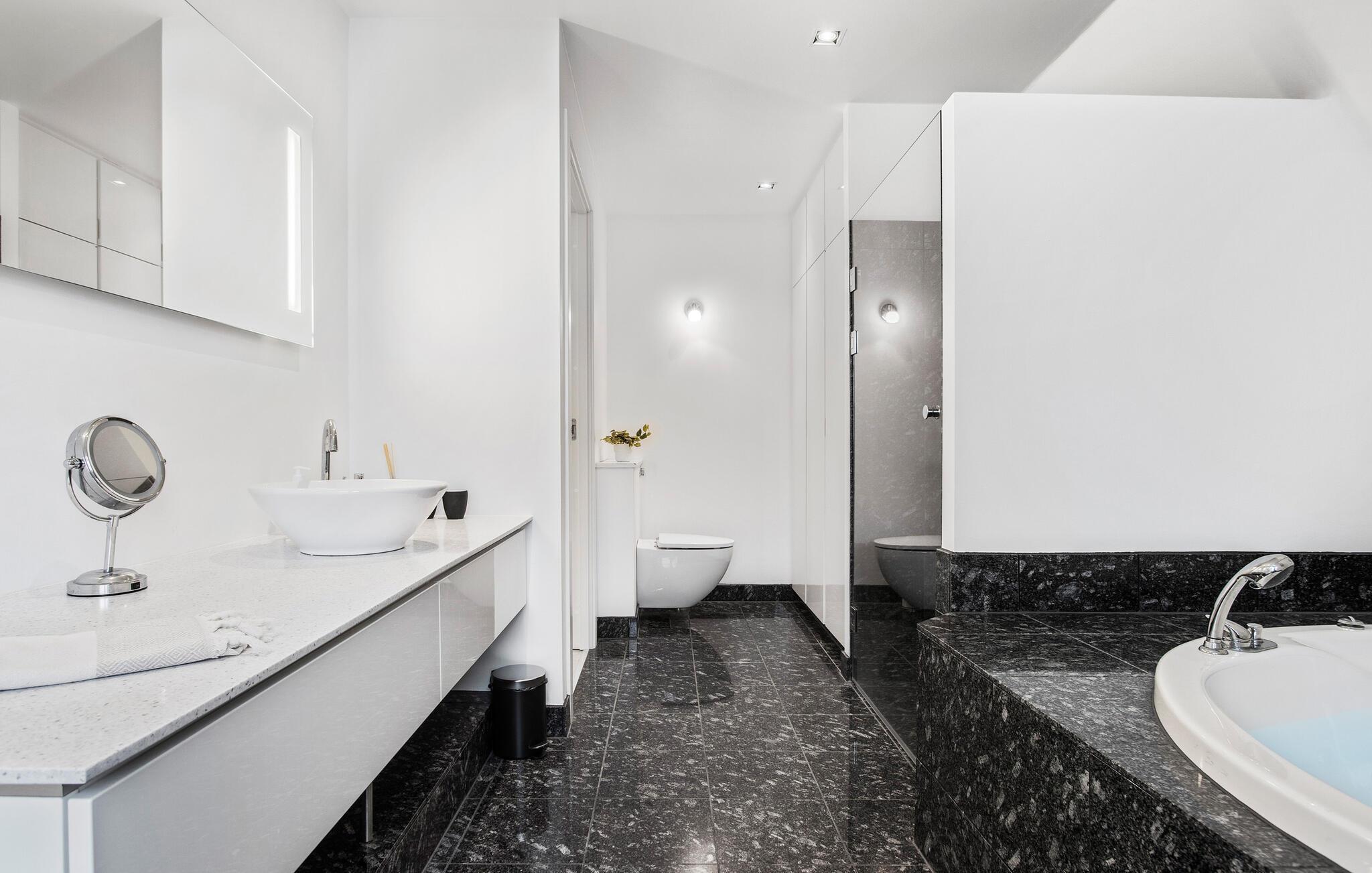 Badeværelse (nr. 1) - WC. Varmt og koldt vand. Bruser