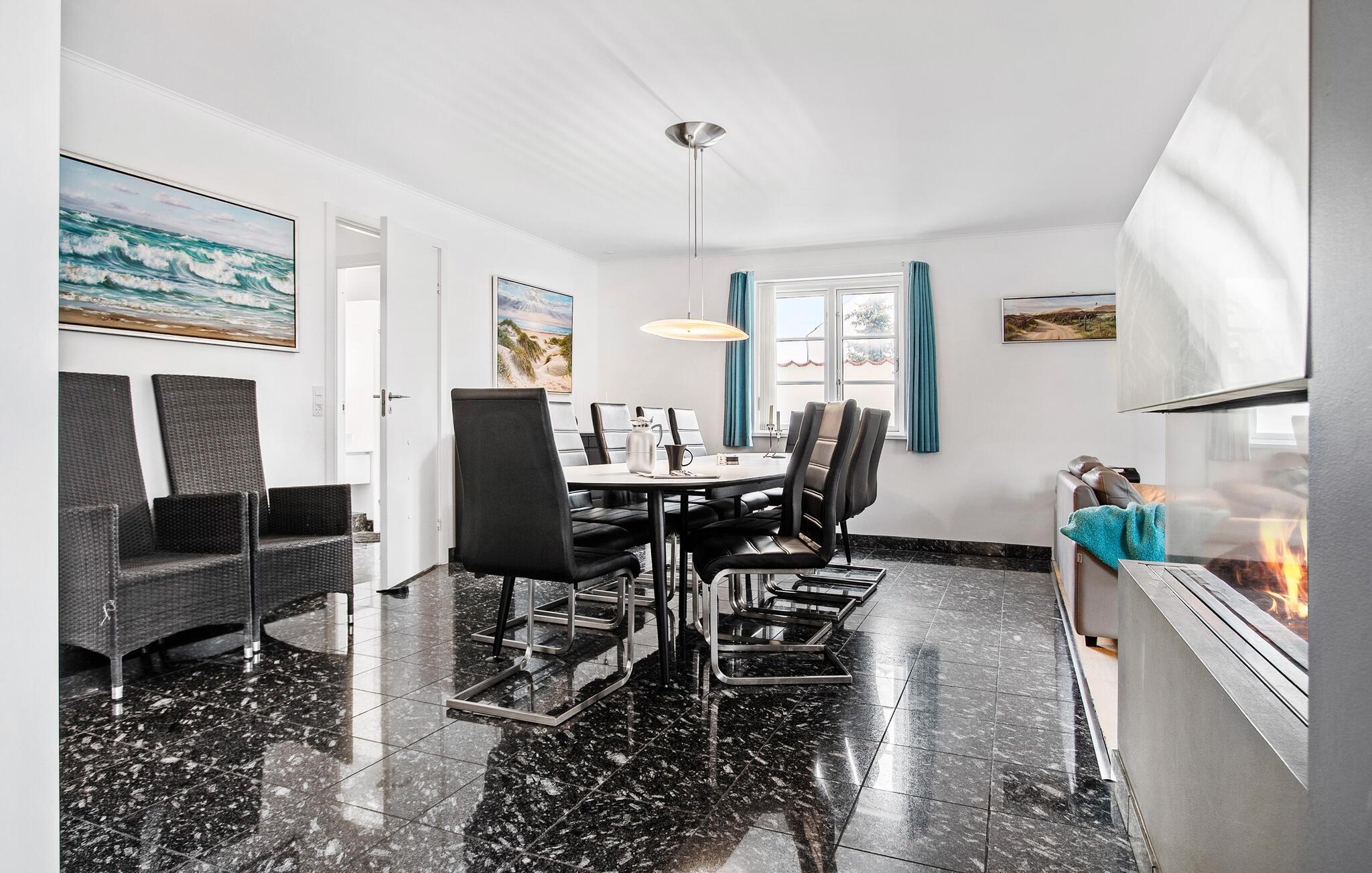 Dette rummelige murstenshus har en skøn beliggenhed i centrum af Blokhus. Indvendigt emmer det af kvalitet over hele linjen her. Indretningen fremtræder flot og elegant med et smukt samspil mellem de lyse vægge og de mørke stengulve, der sammen med trægulvene giver en virkelig varm og behagelig atmosfære. Det store og yderst veludstyrede køkken gør madlavningen til en leg for hele familien. I stuen venter de komfortable sofaer bare på, at I kommer og daser i dem, og gaspejsen er prikken over i'et, der sikrer en virkelig afslappende atmosfære her. Lad en dejlig feriedag gå på hæld her med brætspil eller snacks og en hyggelig filmaften, mens I lægger planer for de kommende dage.