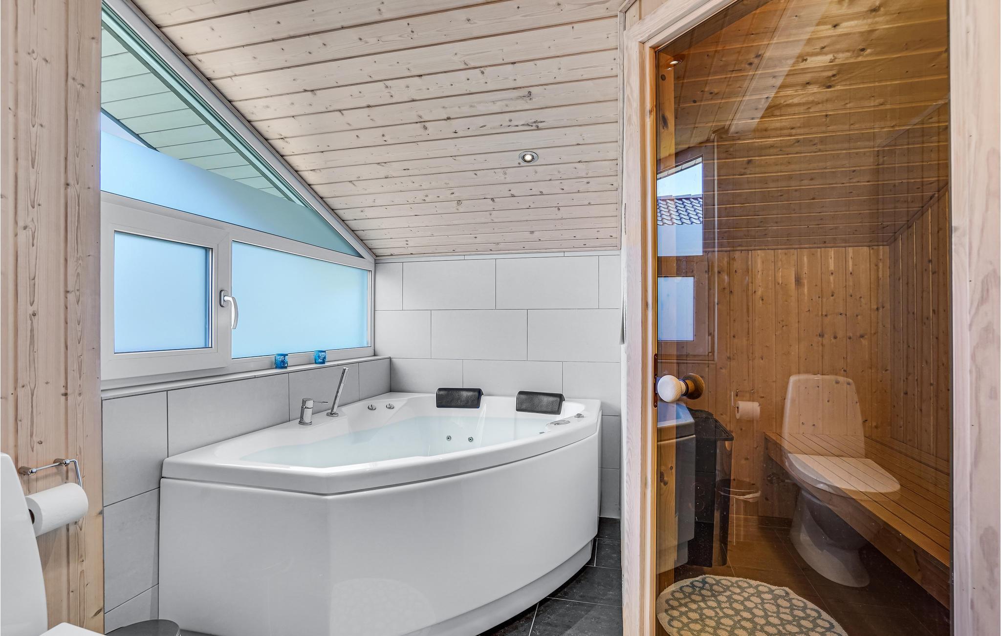 Læn jer tilbage og nyd solen på terrassen, mens børnene leger tagfat i haven. Efter en lang dag på farten kan I slappe af i spabadet eller husets sauna.