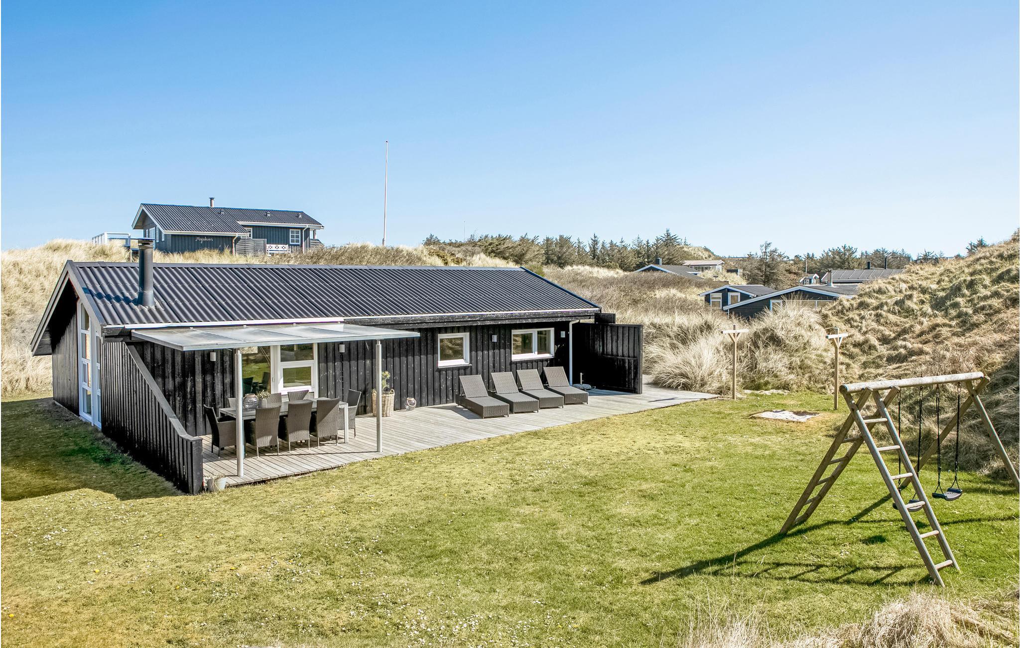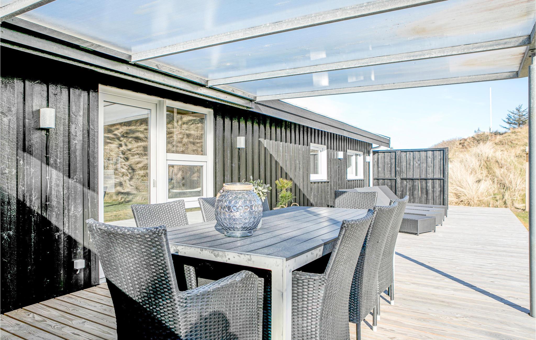Skønt feriehus i Blokhus nær havet med sauna, spabad og hyggelig overdækket terrasse.