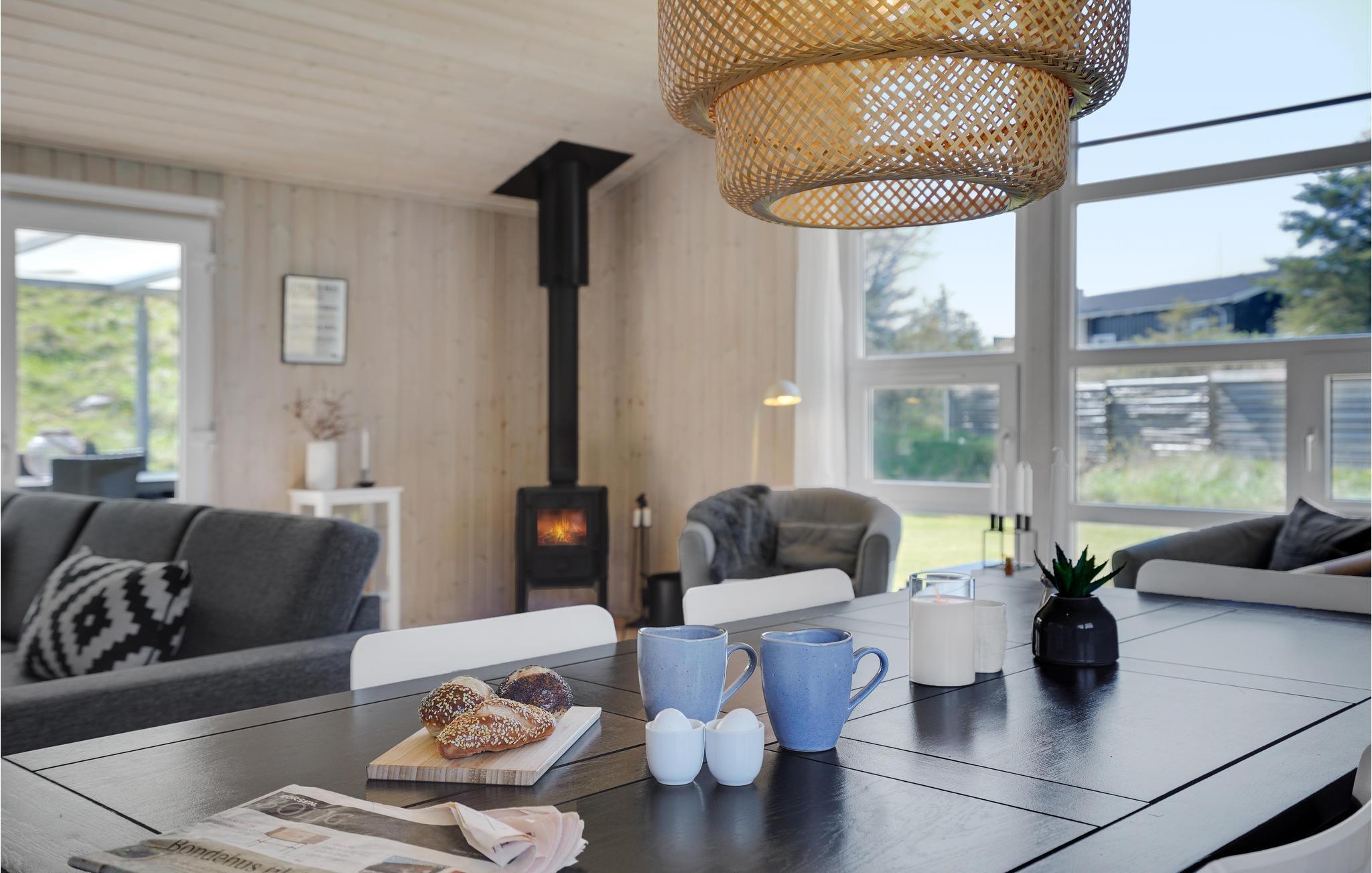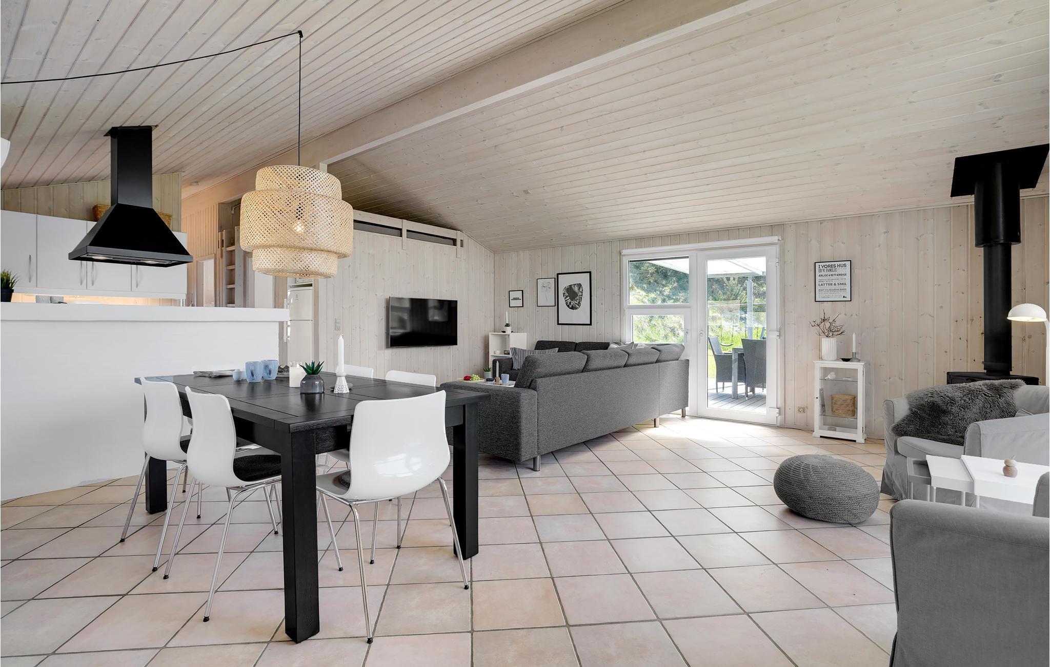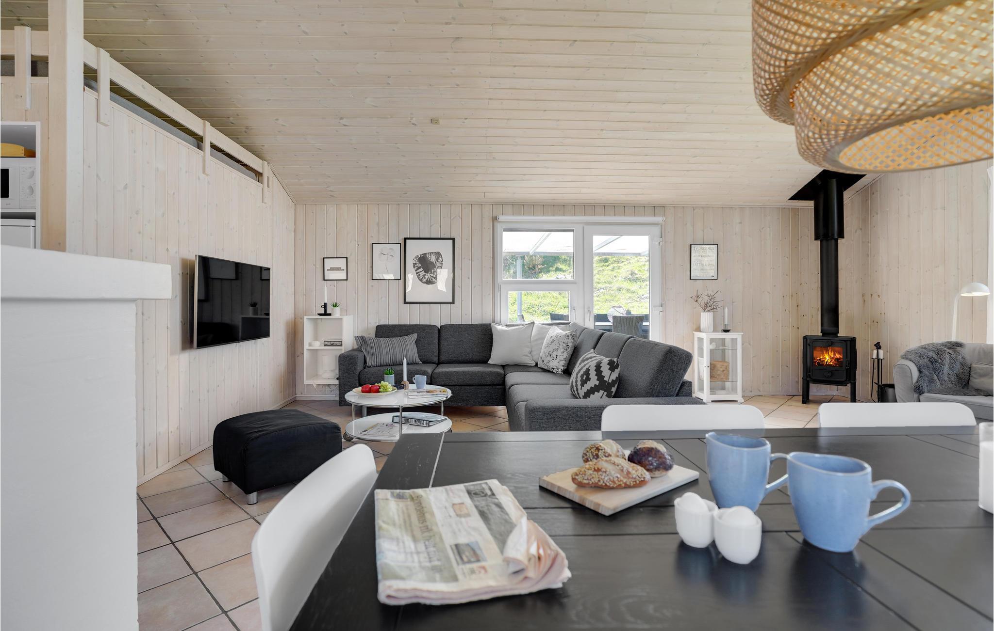 Huset er smagfuldt indrettet med lækre soveværelser og en hyggelig hems som børnene vil elske. På en kølig dag kan I læse en god bog foran brændeovnen eller gå en tur i saunaen eller spabadet. Huset rummer Smart TV med danske, tyske, norske og svenske kanaler samt trådløst højhastighedsinternet. Der forefindes desuden en barneseng samt en høj barnestol. Feriehuset er placeret på en lukket naturgrund med en stor sydvendt terrasse og en dejlig lukket østvendt terrasse, hvor I kan tilberede lækre feriemåltider på grillen. Den overdækkede terrasse gør det muligt at forlænge en hyggelig aften på terrassen, men giver også mulighed for at nyde en dejlig frokost i skyggen. Børnene har mulighed for både at gynge, lege i sandkassen eller spille fodbold på græsarealet ved siden af huset.