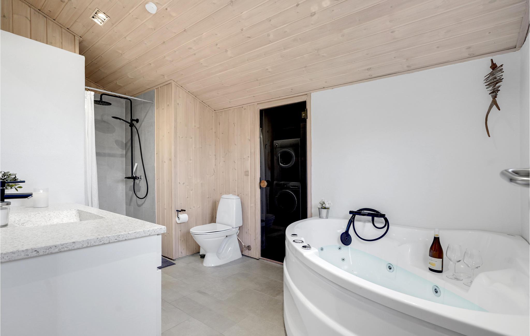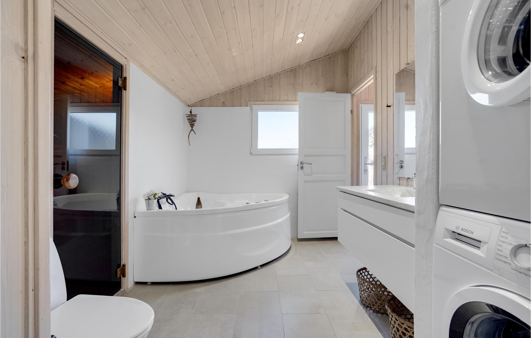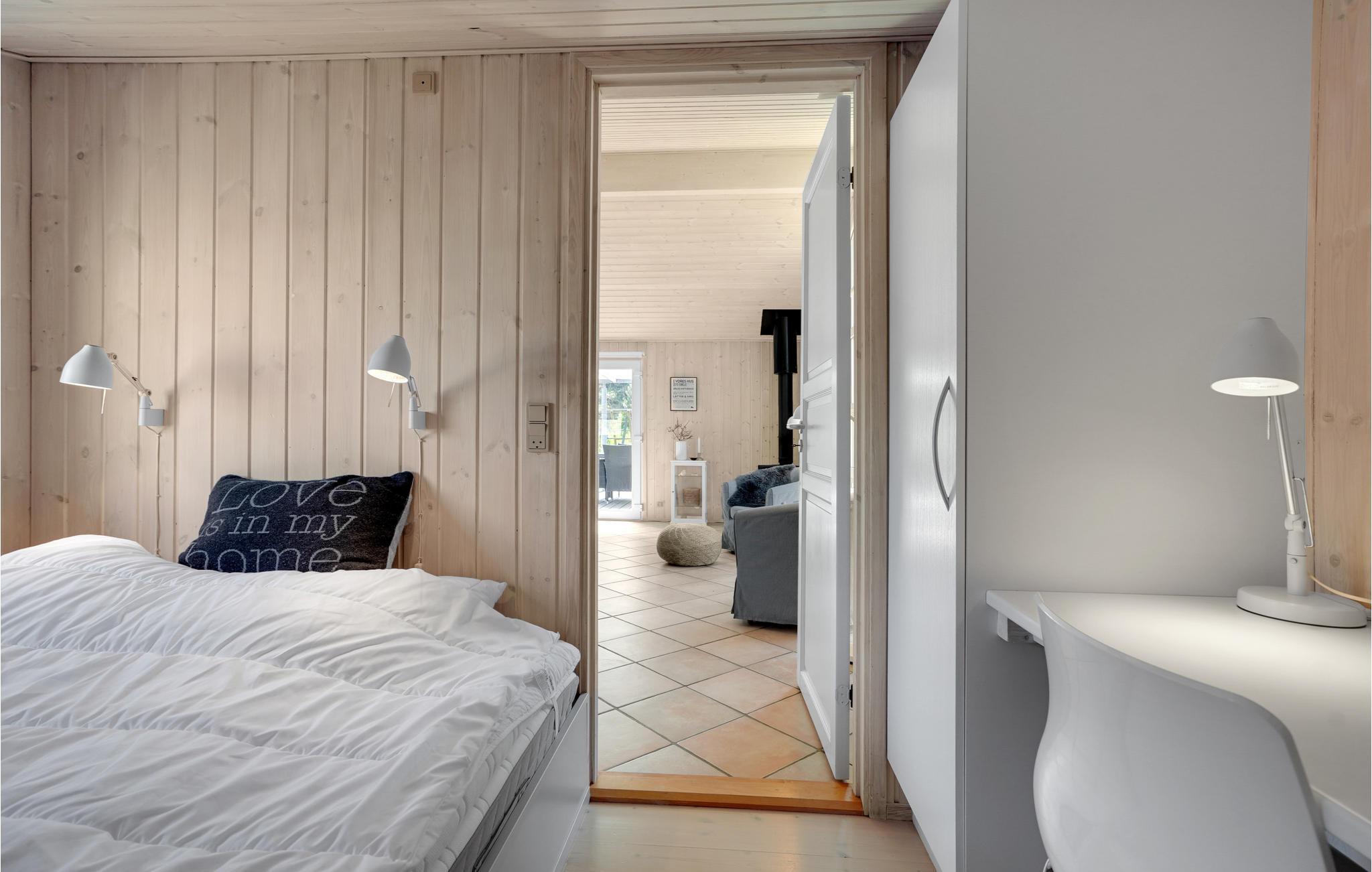 Huset er smagfuldt indrettet med lækre soveværelser og en hyggelig hems som børnene vil elske. På en kølig dag kan I læse en god bog foran brændeovnen eller gå en tur i saunaen eller spabadet. Huset rummer Smart TV med danske, tyske, norske og svenske kanaler samt trådløst højhastighedsinternet. Der forefindes desuden en barneseng samt en høj barnestol. Feriehuset er placeret på en lukket naturgrund med en stor sydvendt terrasse og en dejlig lukket østvendt terrasse, hvor I kan tilberede lækre feriemåltider på grillen. Den overdækkede terrasse gør det muligt at forlænge en hyggelig aften på terrassen, men giver også mulighed for at nyde en dejlig frokost i skyggen. Børnene har mulighed for både at gynge, lege i sandkassen eller spille fodbold på græsarealet ved siden af huset.