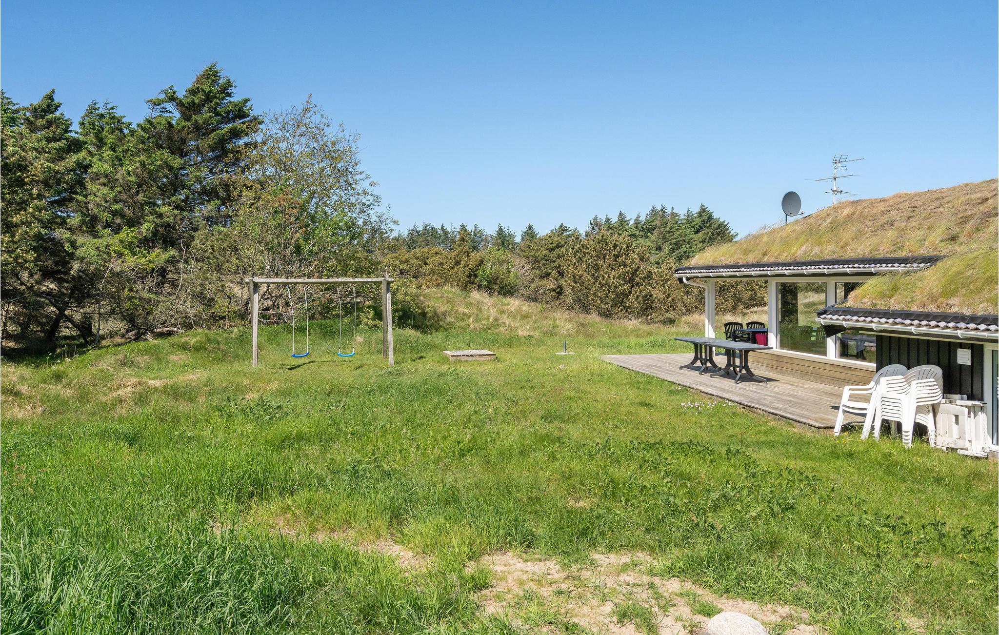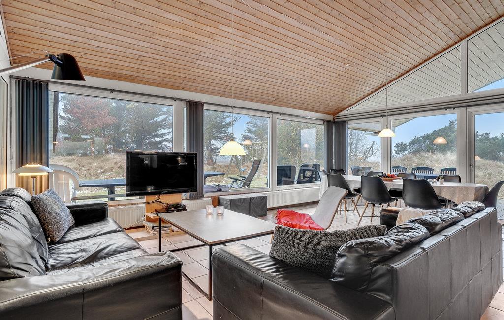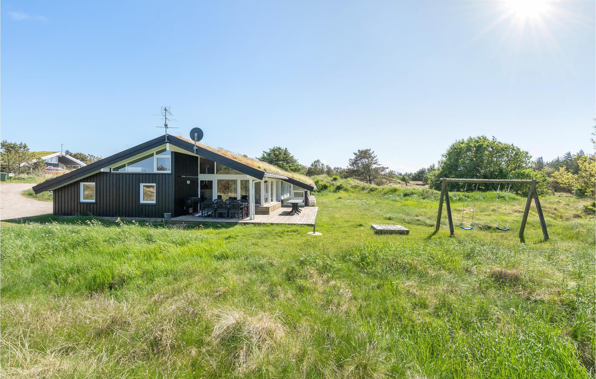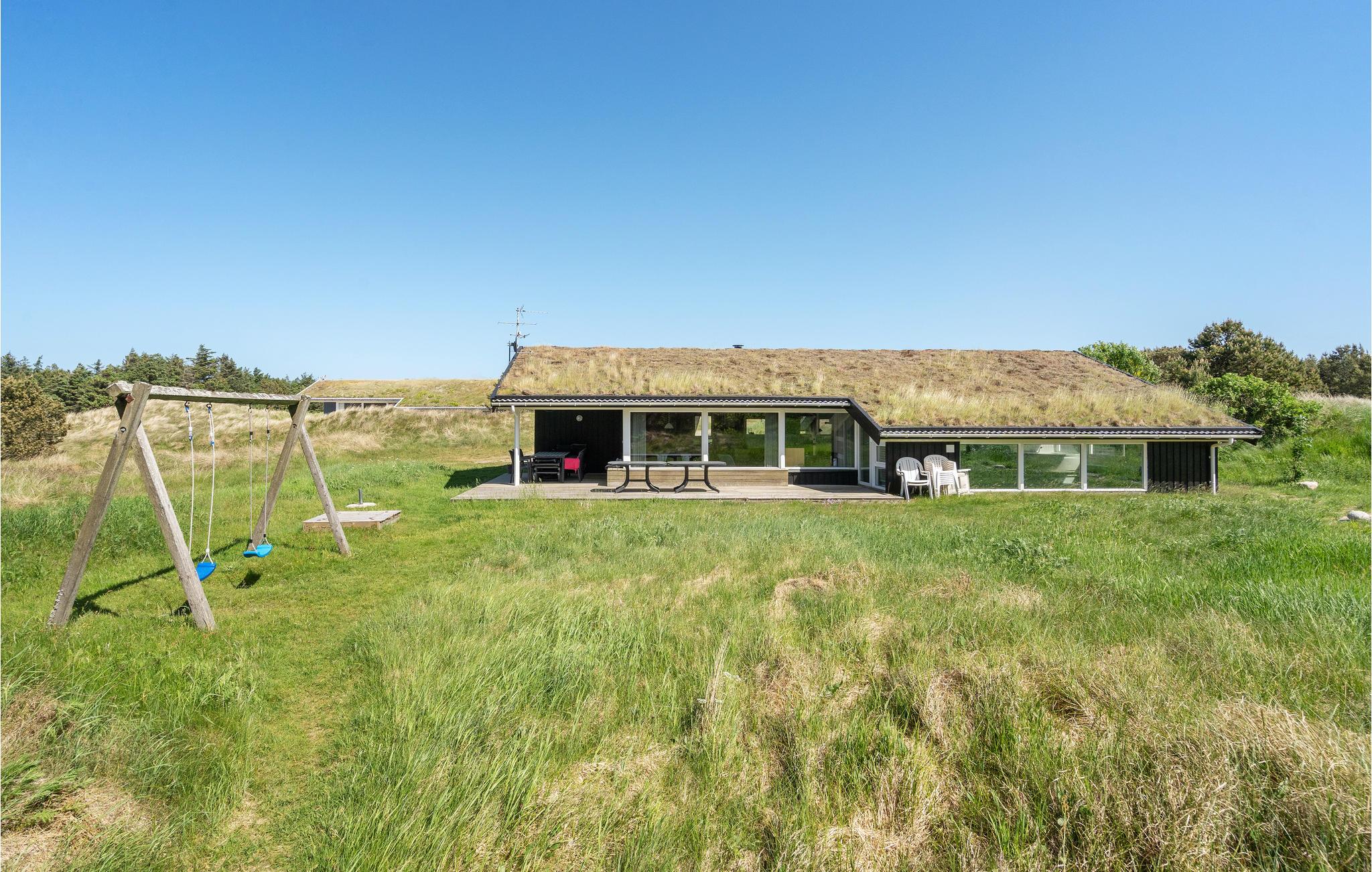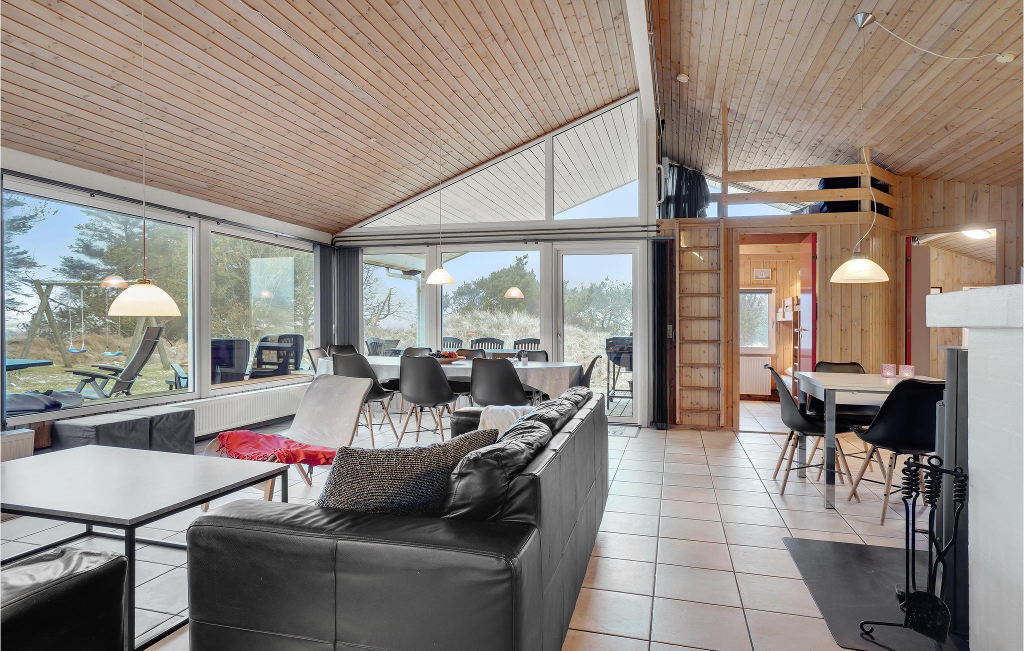 Velkommen til dette sommerhus, hvorfra I har en fantastisk udsigt over det fredede areal af klitter og hede, og hvor I kan nyde det rige dyreliv. I det åbne køkken/alrum/stue kan I hygge jer og spille spil, mens andre måske hellere vil boltre sig i swimmingpoolen, der er udstyret med en vandrutsjebane. Gennem det store vinduesparti i alrummet kan I følge med i poolrummet. Prøv også spabadet efter en skøn gåtur langs vandet, og afslut med en velgørende tur i saunaen. Der er laderstik til el-biler til rådighed ved huset.