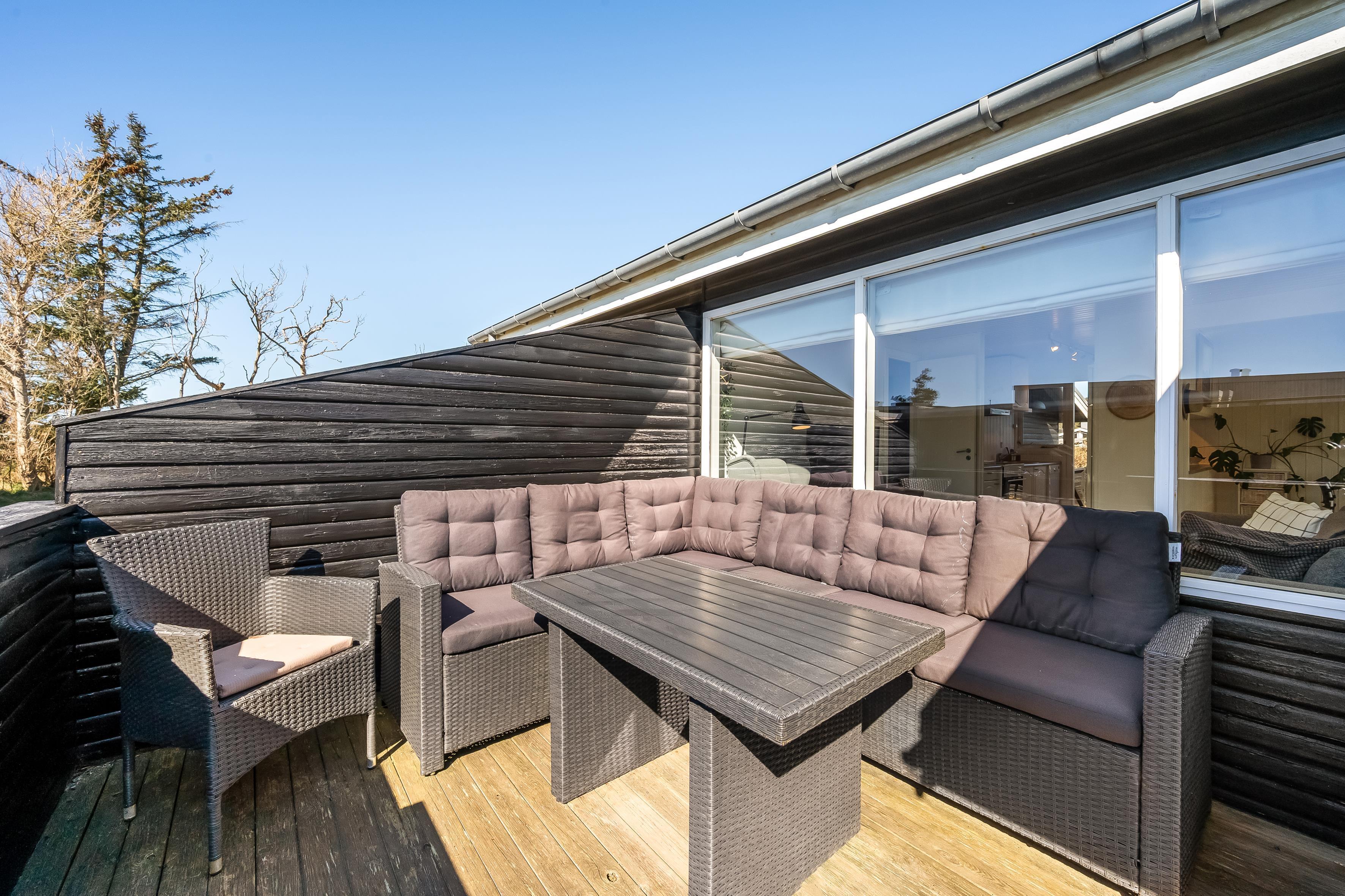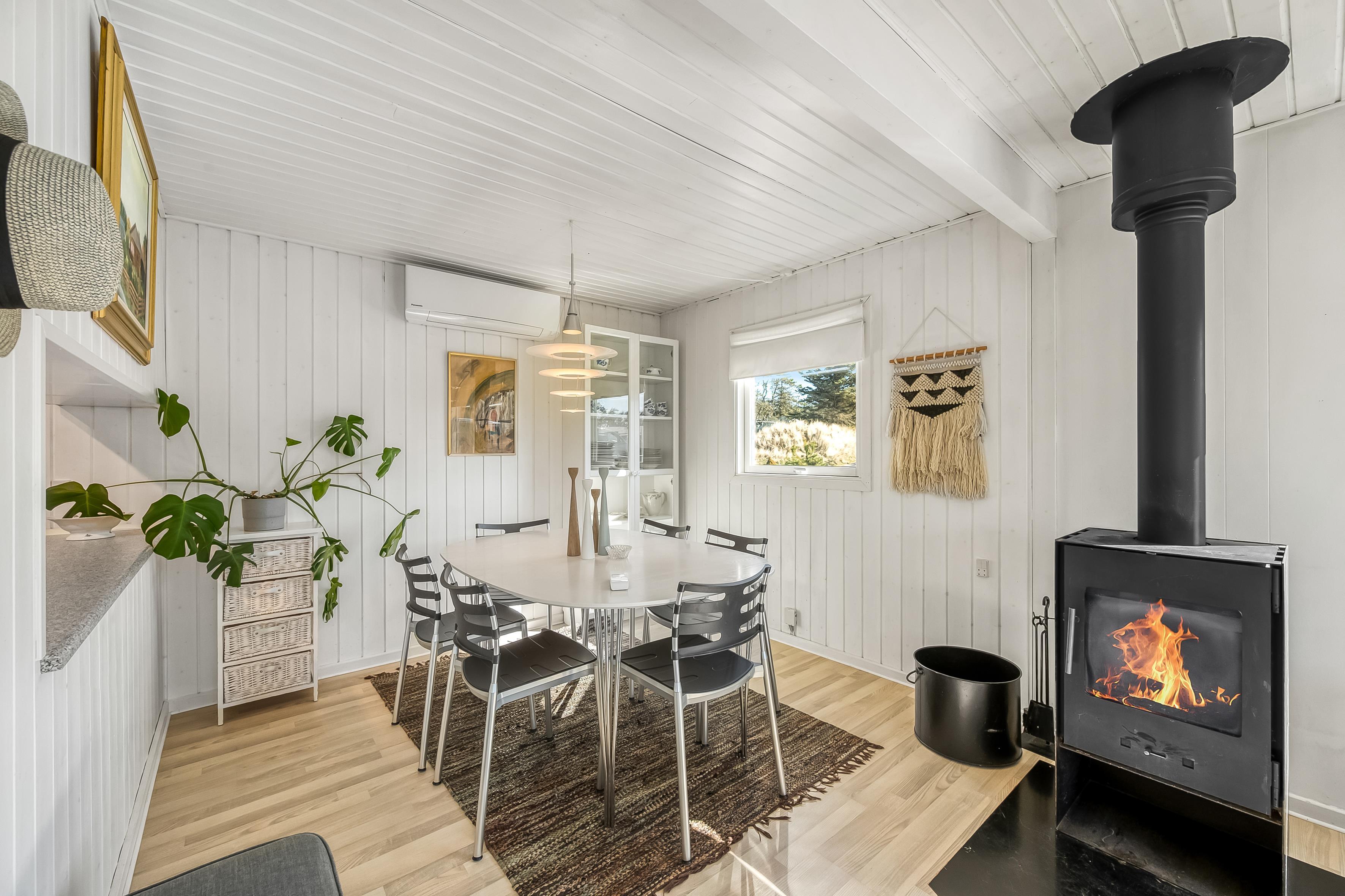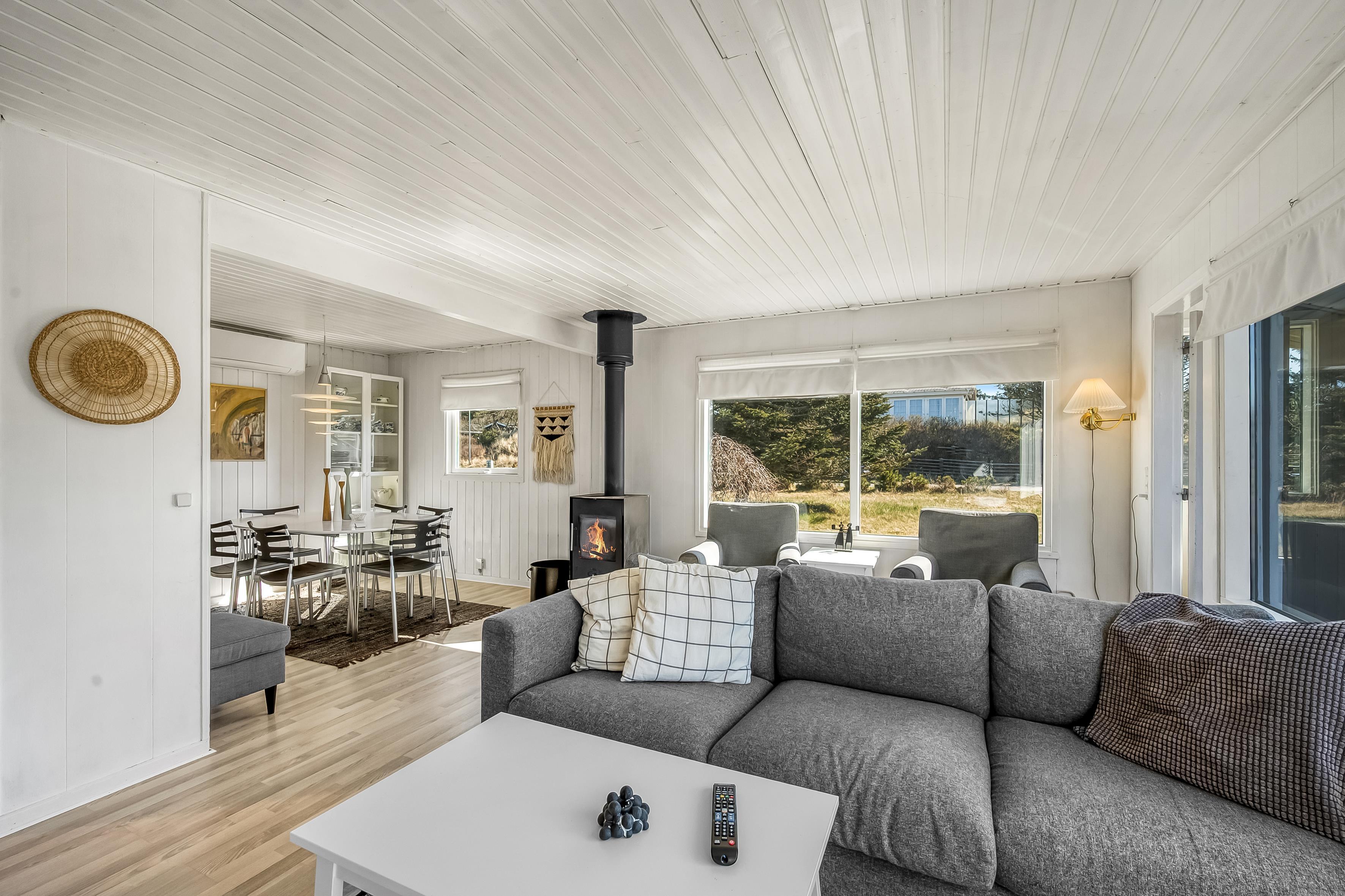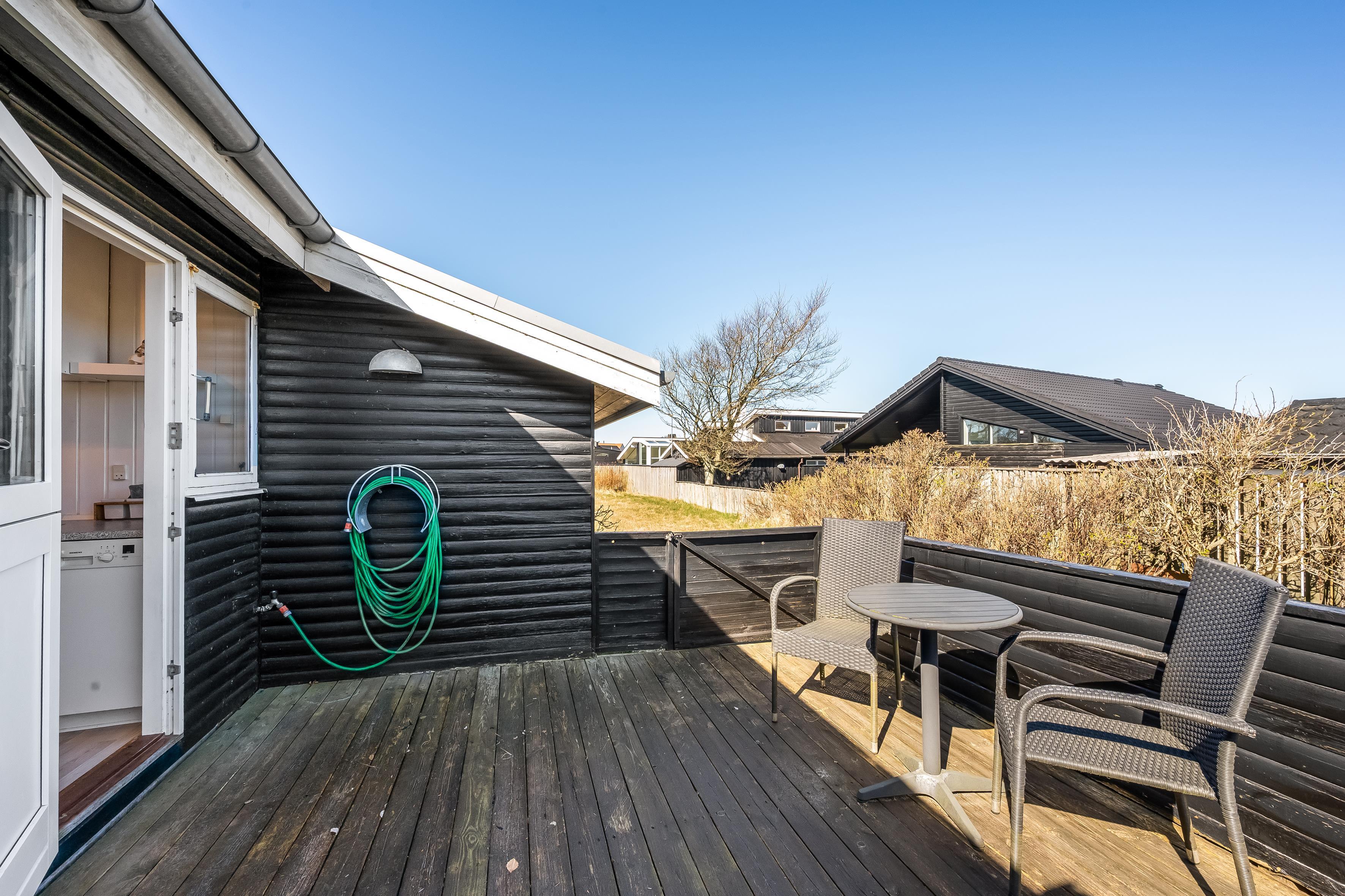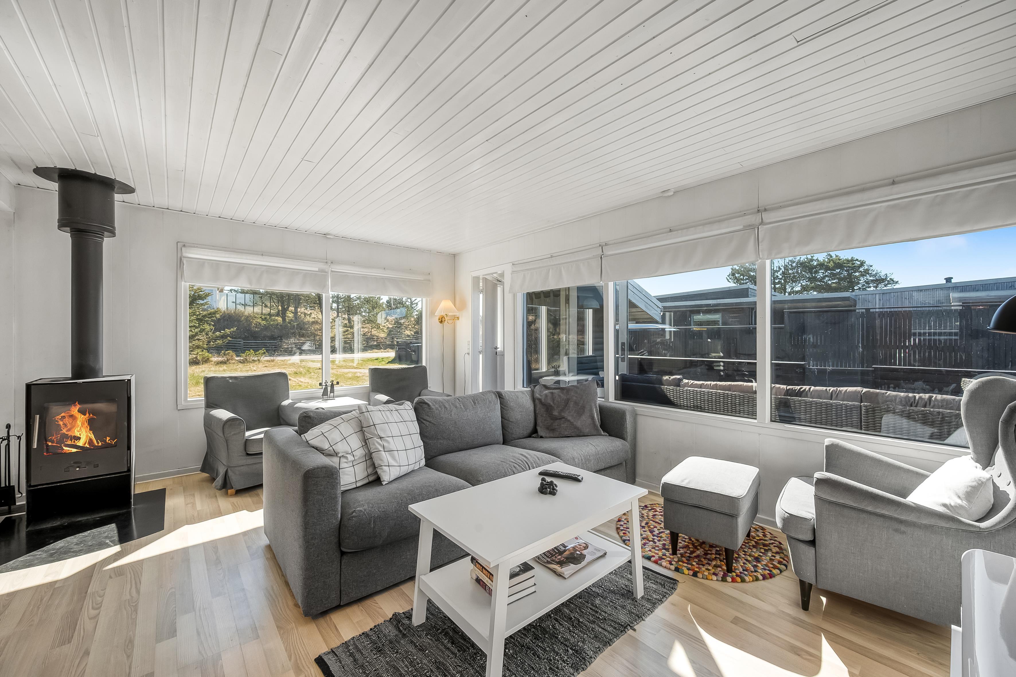 Hyggeligt sommerhus i Blokhus med brændeovn, to terrasser og kort afstand til Vesterhavet og byens mange attraktioner.