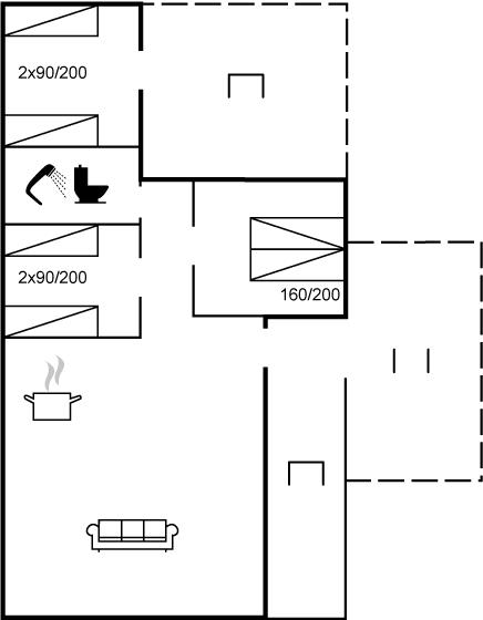 Der er i alt 3 soveværelser. Sovepladserne fordeler sig på: 2 sovepladser i dobbeltseng. 4 sovepladser i enkeltsenge.
