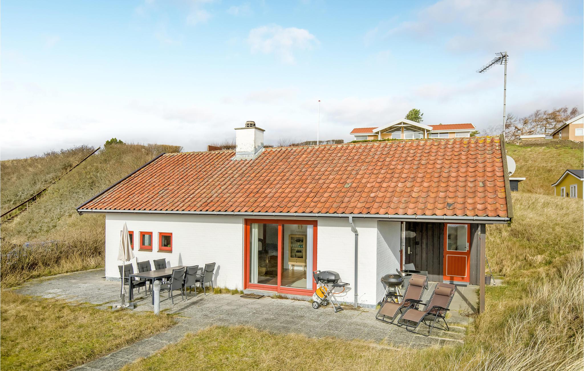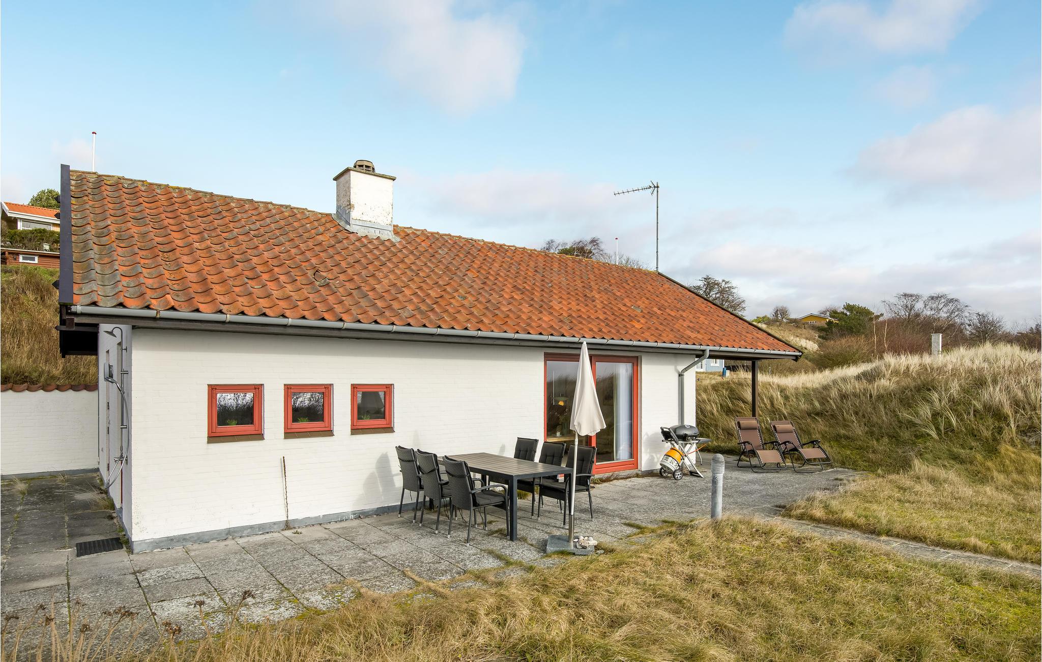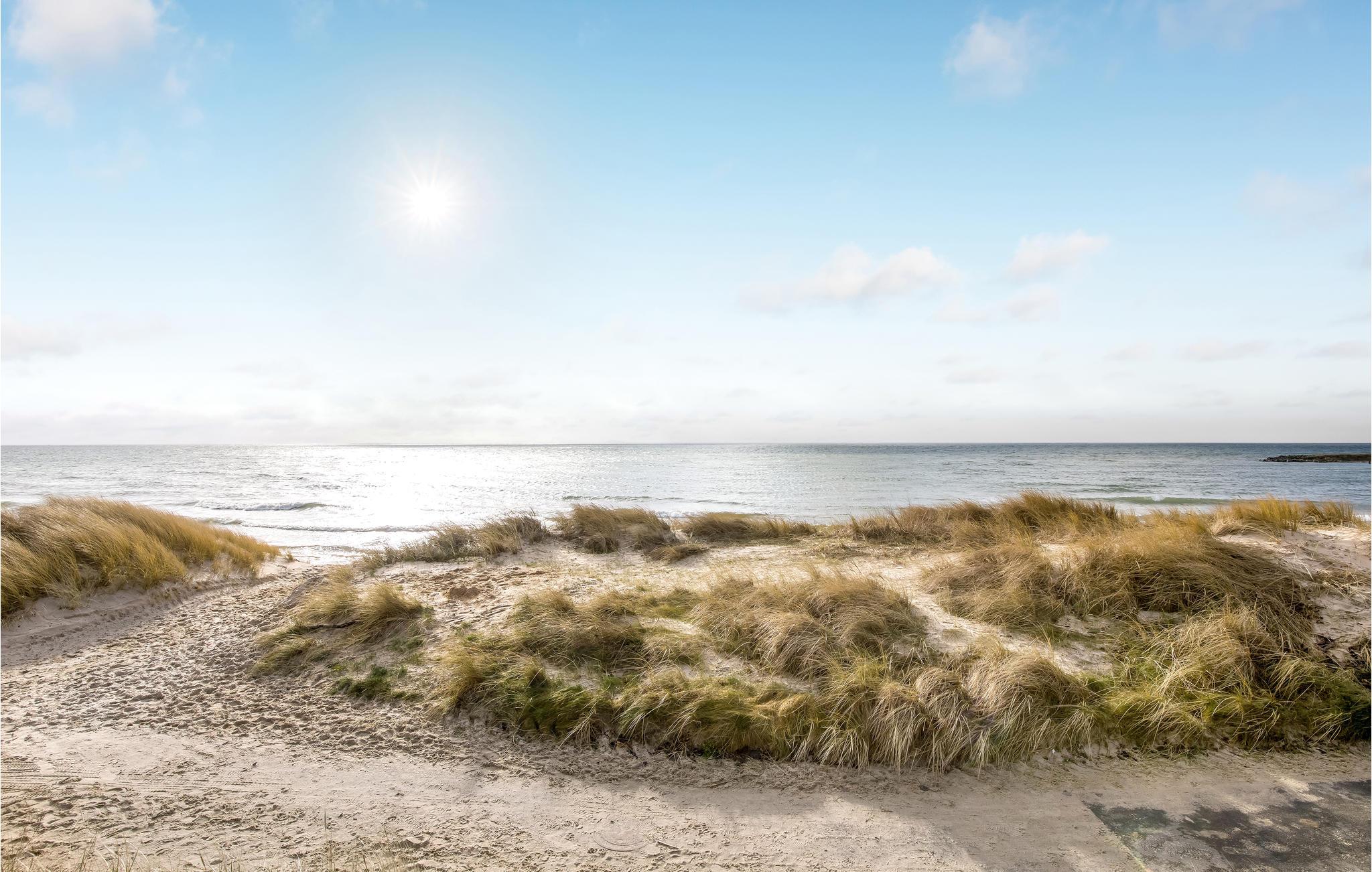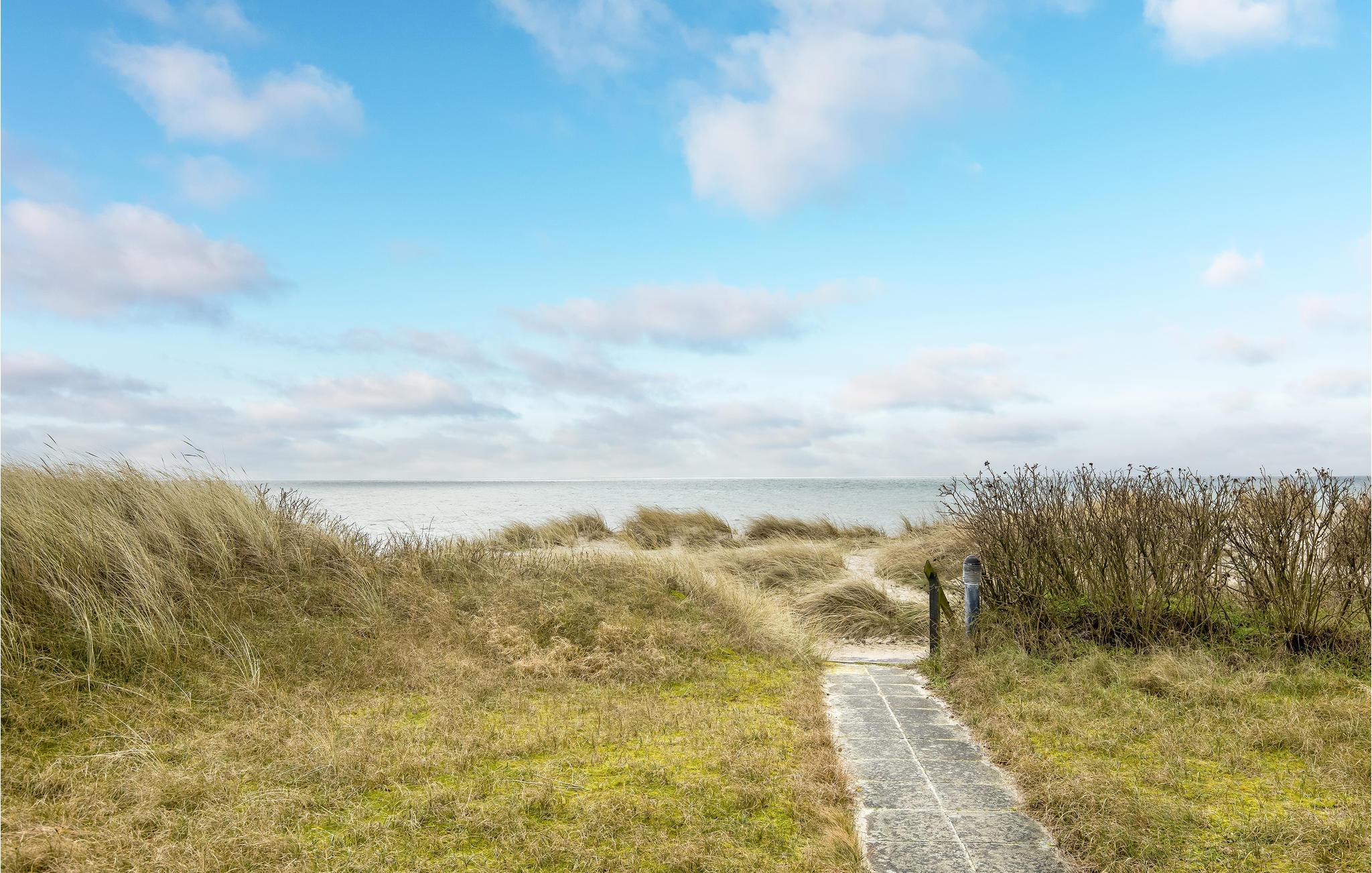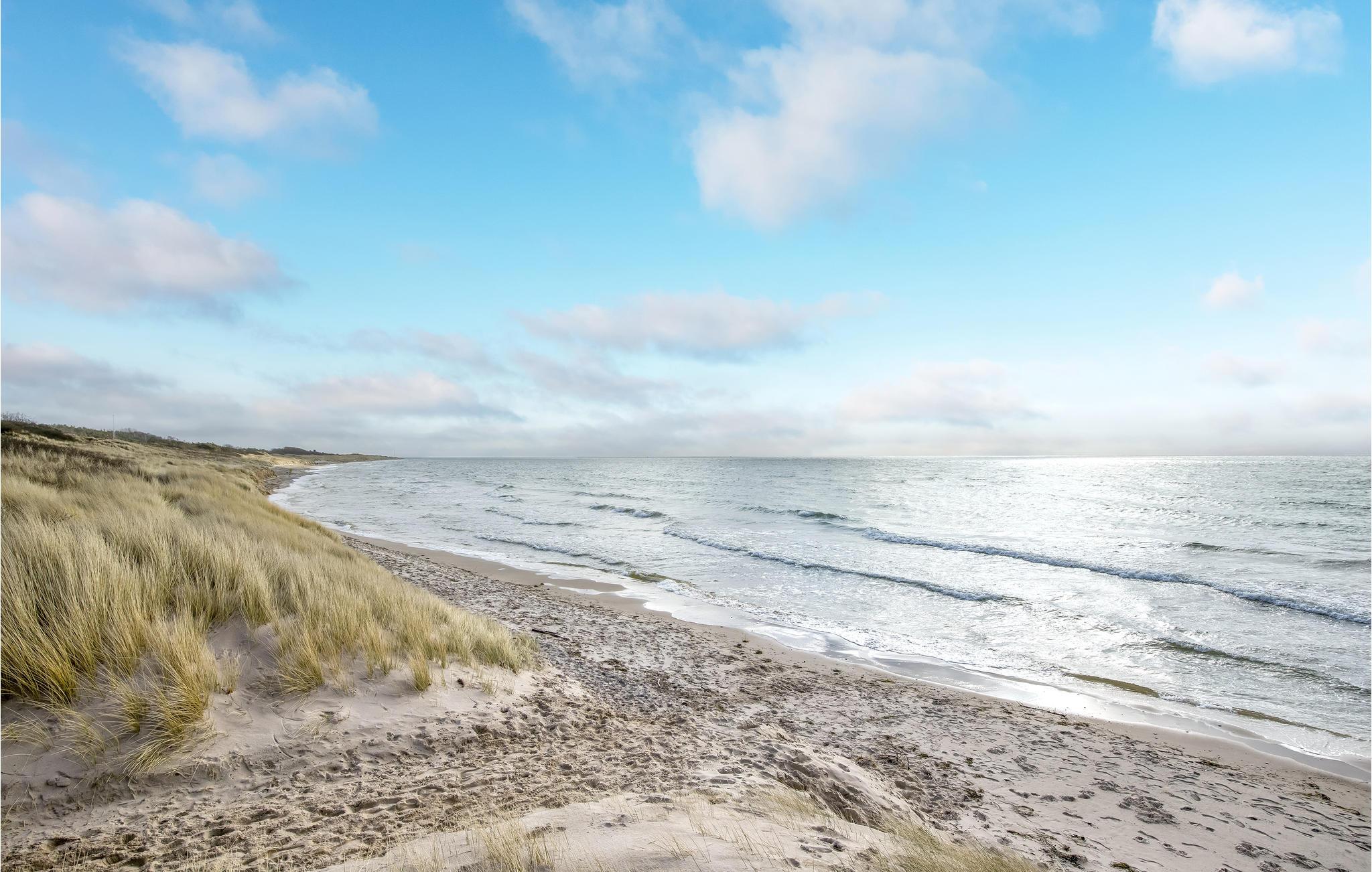 Grunden er omkranset af buske, der skygger for vinden. Der er kun få skridt ned til stranden, hvor I kan gå lange ture og blive forfrisket af vind, bølger og udsigten over horisonten.