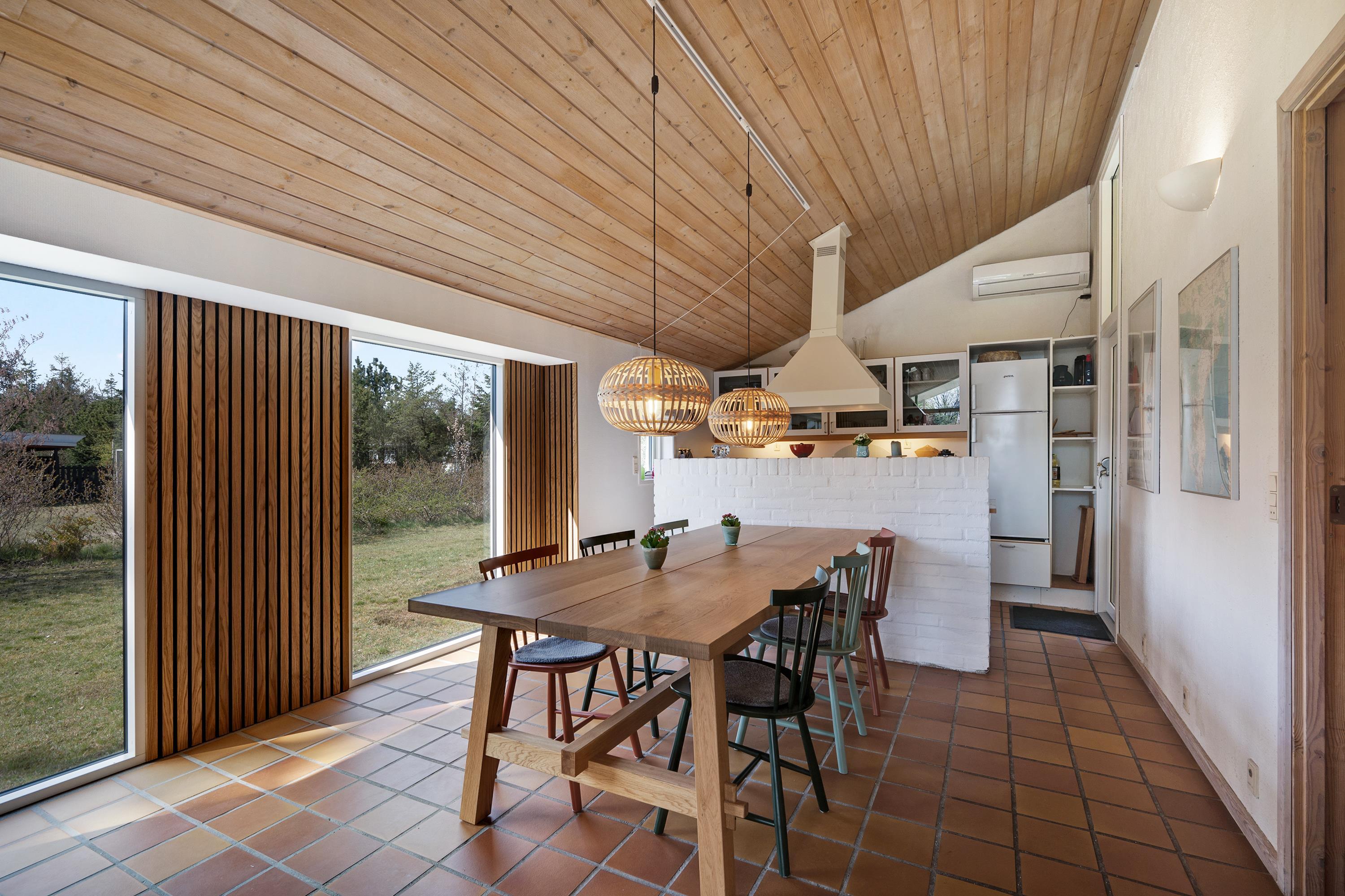 Hyggeligt sommerhus i Boeslum Strand med terrasse, brændeovn og energivenlig varmepumpe nær vandet.