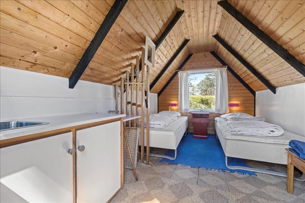 Træd ind i dette lille, men hyggelige feriehus, der byder på en varm og afslappet atmosfære. Stuen er hjertet af huset med pejs, brændeovn og varmepumpe – perfekt til hyggelige aftener. Her finder du også en komfortabel dobbelt sovesofa. Det lille, men funktionelle køkken er veludstyret med bl.a. opvaskemaskine. Soveværelset har en dejlig dobbeltseng, og i annekset venter to enkeltsenge, der giver ekstra fleksibilitet til din ferie. Badeværelset er pænt og rummeligt med bruseniche.