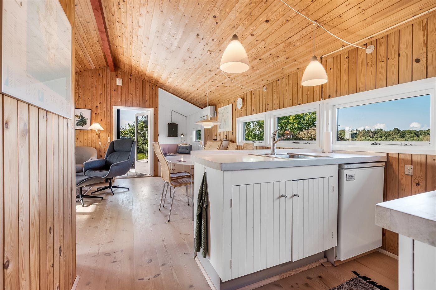 Indvendigt fremstår huset lyst og venligt. Ruminddelingen er god og dermed er huset oplagt til f.eks. en familie med to til tre børn eller måske to par uden børn. Mulighederne er mange i dette skønne sommerhus. Det er også muligt at medbringe familiens firbenede ven.