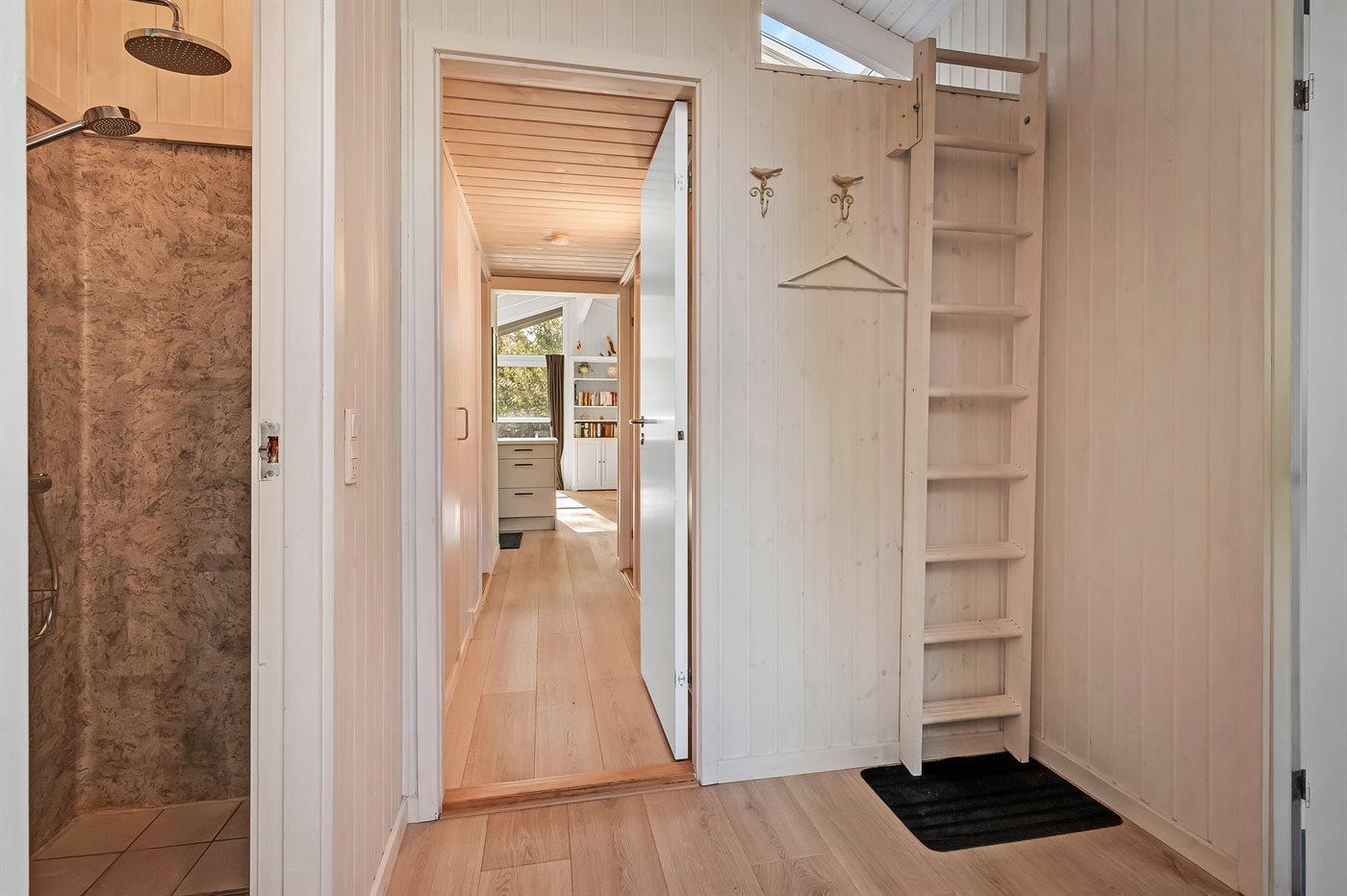 Der er fire gode soveværelser, to med dobbeltsenge og to med enkeltsenge, samt to skønne badeværelser med gulvvarme. Det ene badeværelse har både badekar og adgang til sauna, ideelt til afslapning efter en dag ved stranden.
