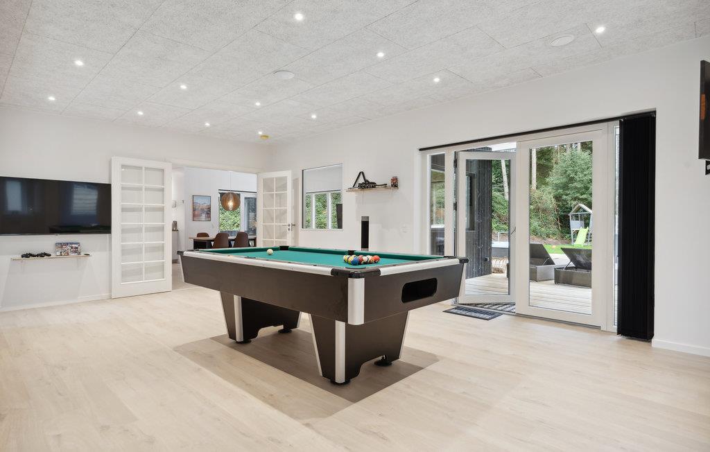 Drømmer I om høj komfort, luksus og adskillige muligheder for at forsøde jeres næste ferie? Så er I kommet til det rette sted! Dette hus ligger i et skønt område med skov og natur lige uden for døren, og i denne drøm af et hus bliver ferien derfor en ren fornøjelse. Huset er helårsisoleret og udstyret med en masse herlige faciliteter. Indenfor kan I spille pool, se tv eller slappe af oven på en lang dag med oplevelser. Der er et dejligt lysindfald i det store, åbne opholdsrum, som emmer af kvalitet. Hvis I trænger til at slappe af, kan I sætte jer til rette i saunaen eller spabadet, ligesom I kan tage en frisk dukkert i det flotte opvarmede swimspa, som har lave driftsomkostninger også i vinterperioden. Der er også gode rammer til at nyde solen og nyde udsigten til haven og himlen, mens børnene har det sjovt med legeredskaberne. De lune sommeraftener slutter med en hyggelig grillmiddag på terrassen.