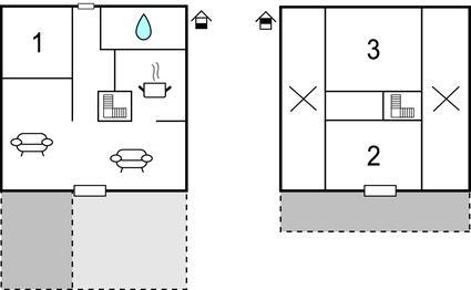 Soveværelse 8m2 (nr. 2) - 1 Soveplads. (Enkeltseng(e)). 2 Sovepladser. (Dobbeltseng(e)).