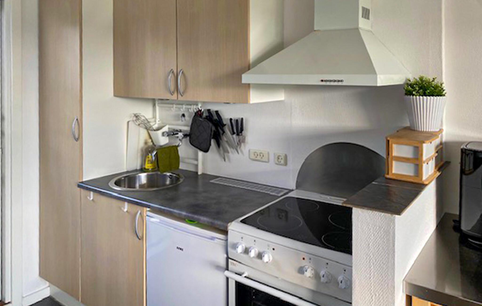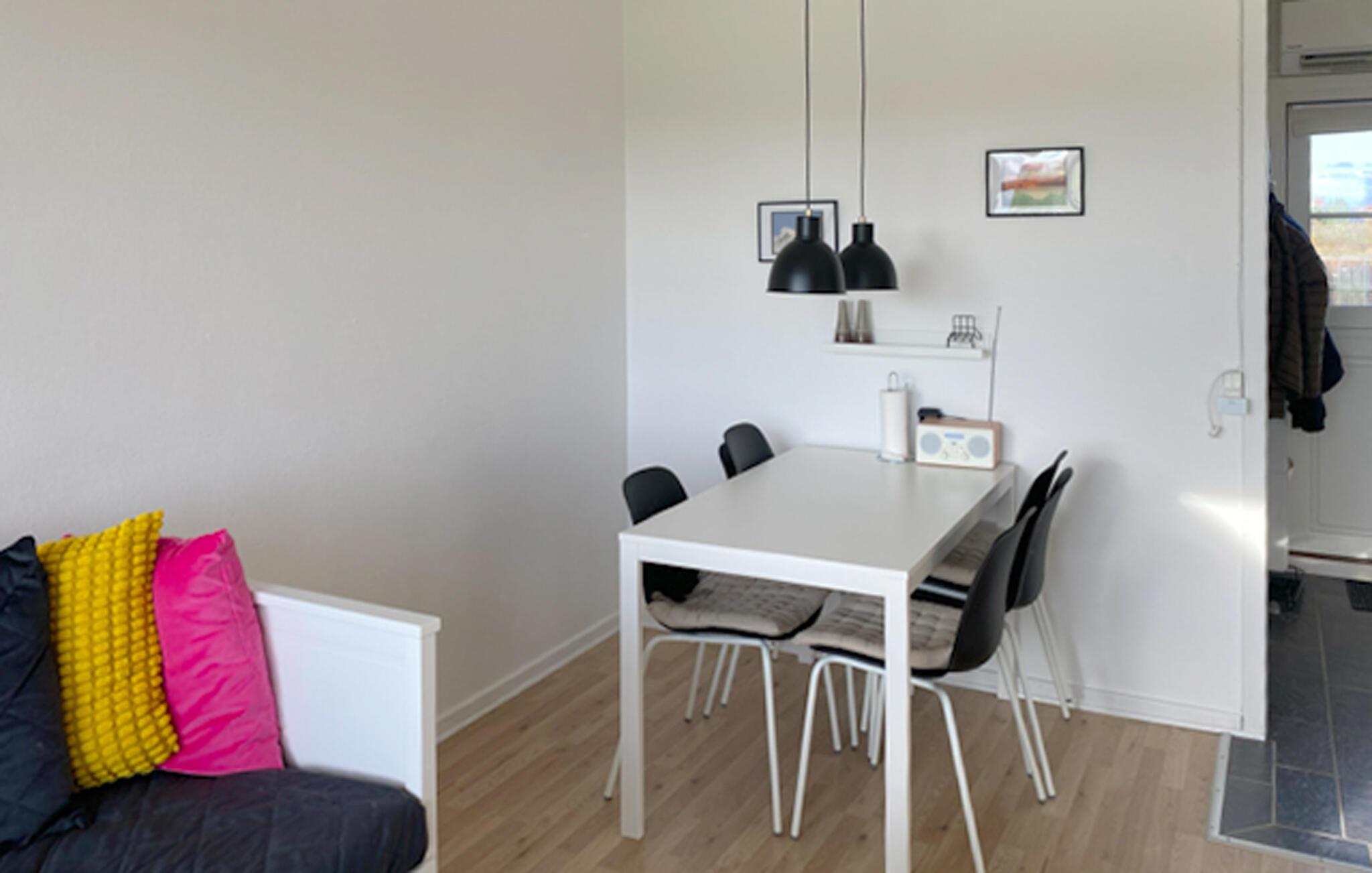 Lejligheden er bæredygtigt samt lyst og venligt indrettet med sovesofa til to personer (150 cm) og en hems med to boksmadrasser (ikke ståhøjde). Fra stuen er der udgang til en privat terrasse med havemøbler, så der er basis for mange skønne sommeraftener under åben himmel.