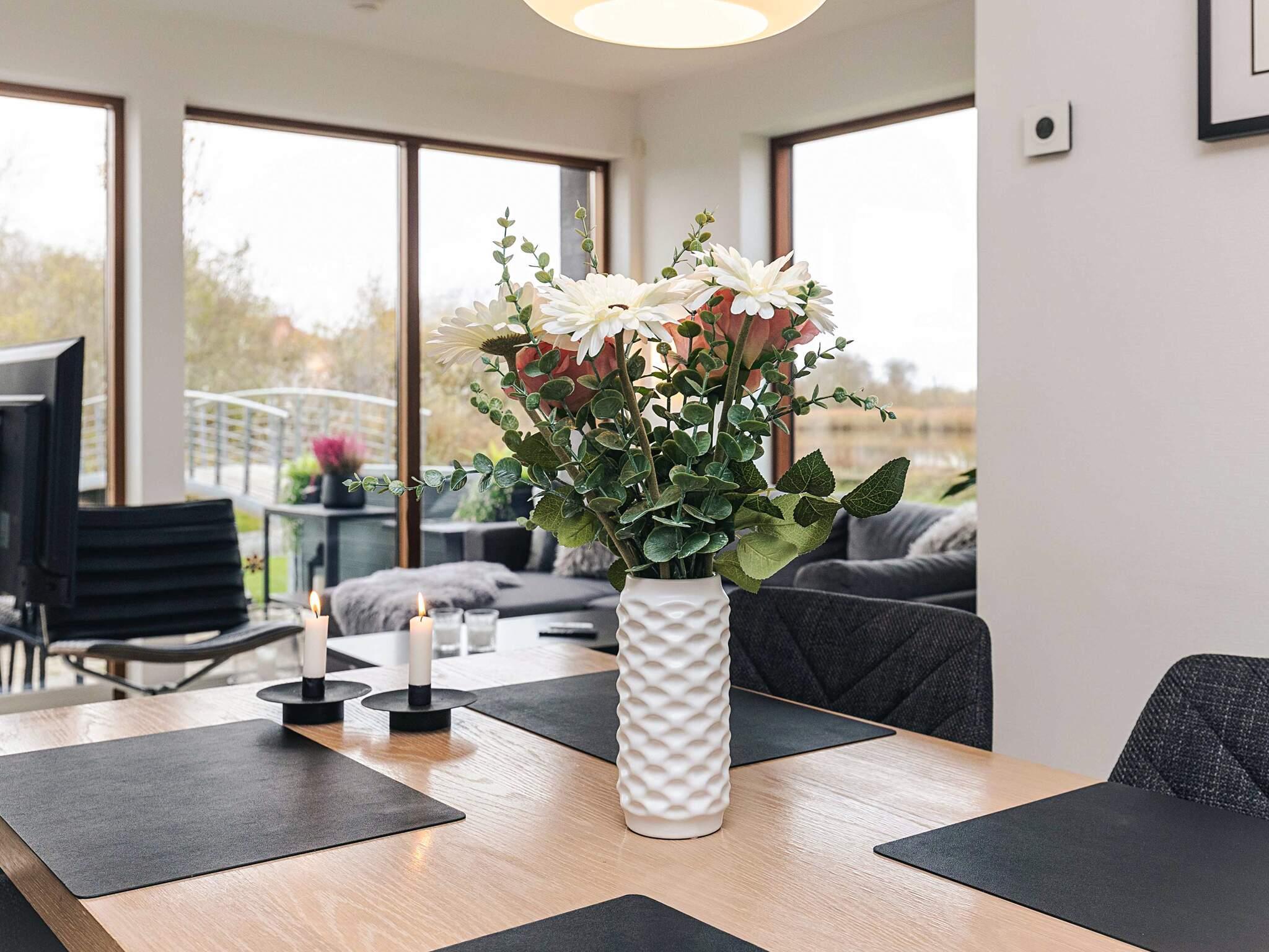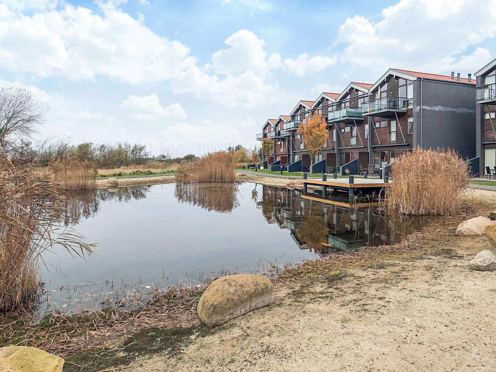 Ferielejligheden har fra stuen en skøn udsigt over Barfods Dam søen og ligger 300 meter fra stranden og havnen med butikker og restauranter. Tæt på lejligheden finder man byen med indkøb, shopping og flere restauranter. Bogense byder også på skøn natur samt golfbane. Lejligheden har en kombineret opholds- og spisestue samt et veludstyret køkken. Der er plads til 5 personer med to soveværelser, hvoraf det ene har en dobbeltseng, og det andet har en sovesofa. I stuen findes yderligere en sovesofa. Badeværelset har bruseniche og gulvvarme. Ferielejligheden er udstyret med faciliteter som tv og internet og der er fjernvarme. Udlejes ikke til ungdomsgrupper.