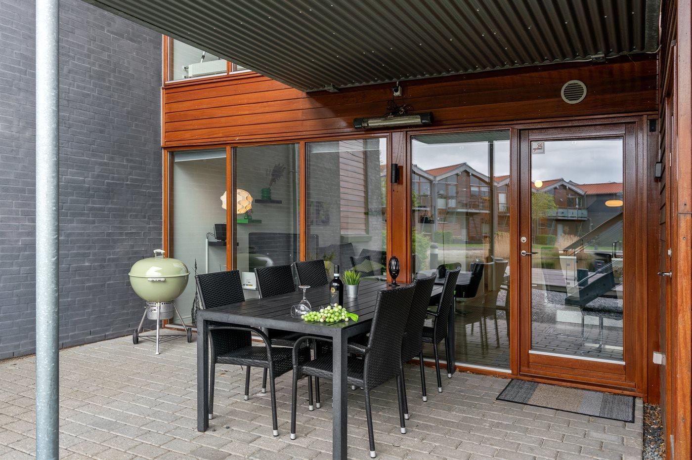 Flot stuelejlighed tæt på Bogense Marina med terrasse, udsigt over sø og nærhed til strand og by.