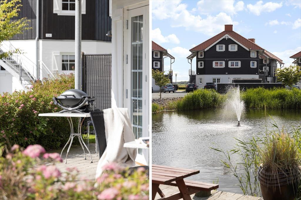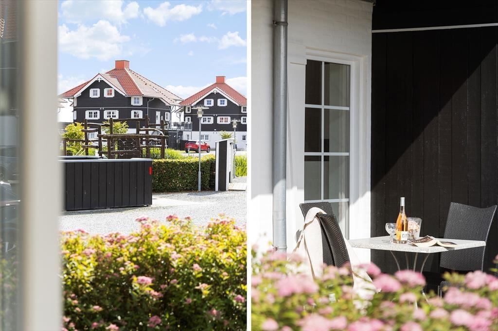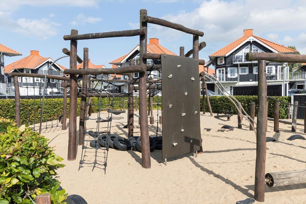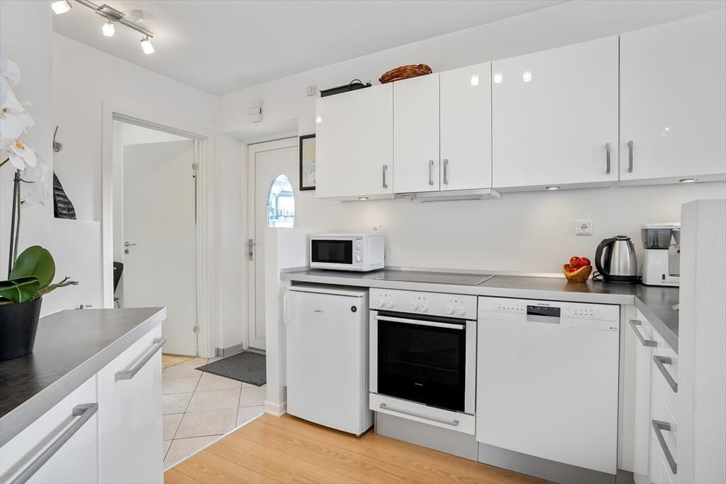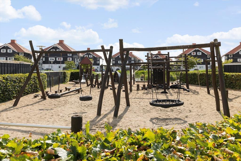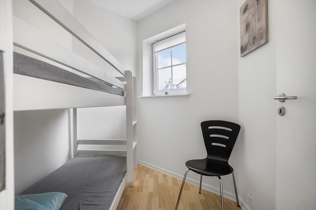 Lejligheden ligger i et område med et stort fælles udeområde, der indbyder til leg, boldspil og afslapning i solen – perfekt til børn, der har brug for plads til at tumle, og voksne, der vil nyde kaffen i det fri. Bare 300 meter fra lejligheden finder du Bogense Strand, hvor du kan bade, slentre langs vandet eller tage en dukkert fra badebroen. Du er også tæt på den stemningsfulde havn med isboder, små butikker og restauranter, hvor du kan nyde alt fra friskfanget fisk til klassiske caféretter. Det hele ligger i gåafstand – og det gør det let at skifte mellem aktivitet og afslapning i løbet af dagen.