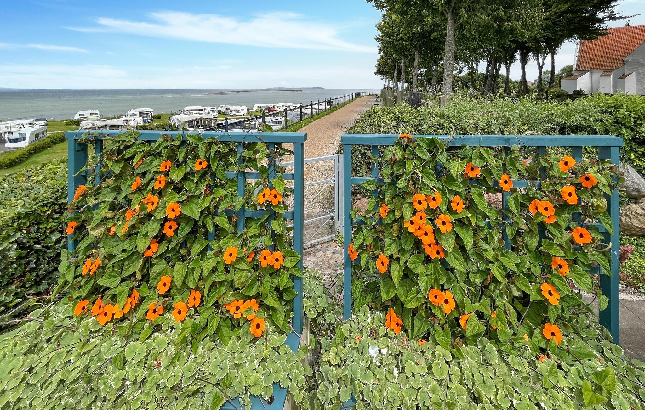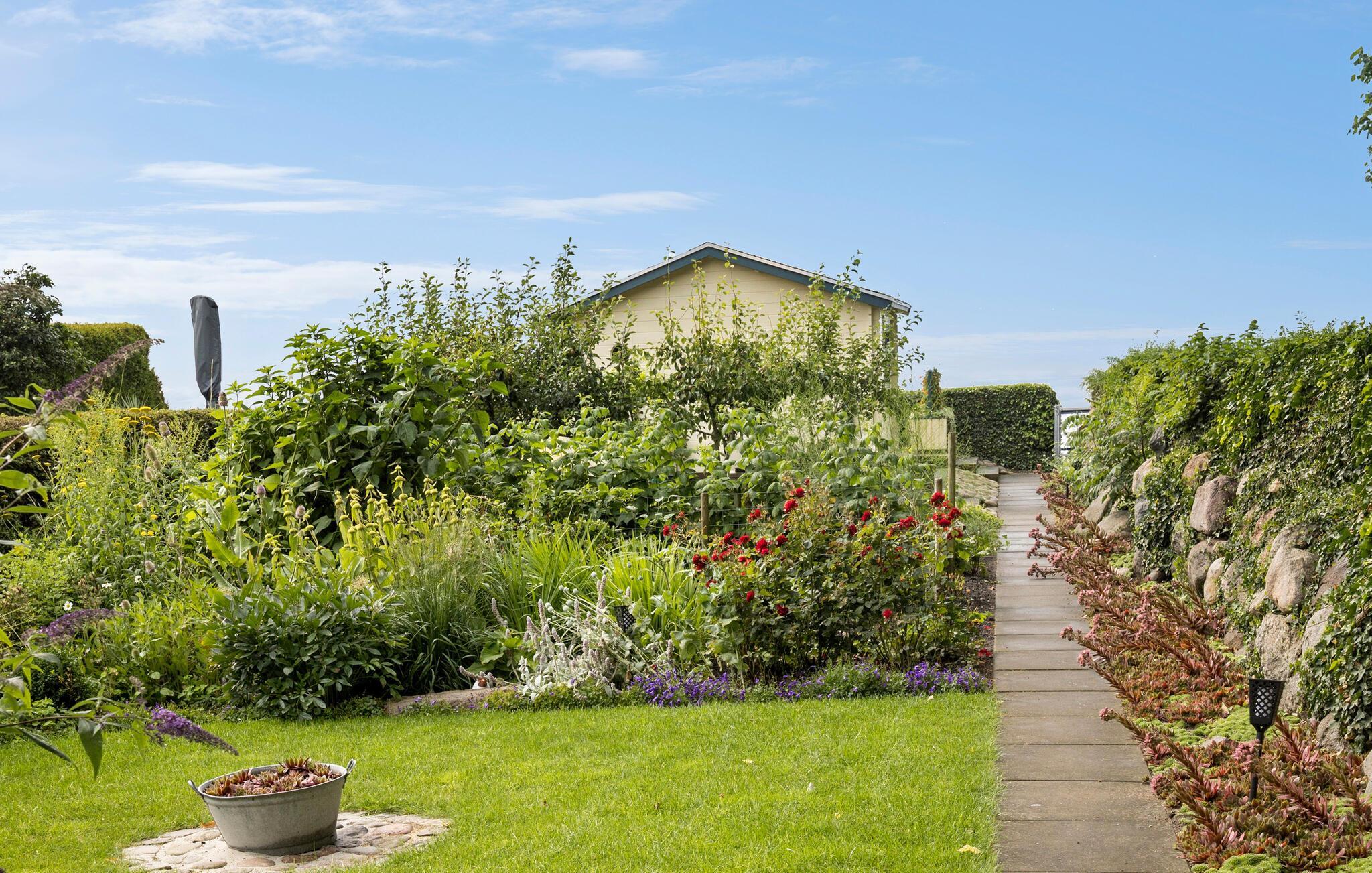 Den smukke, private have fører direkte til havet og byder på en betagende panoramaudsigt over vandet. Nyd jeres måltider på terrassen, eller ophold jer i den idylliske gårdhave med dens frodige planter.