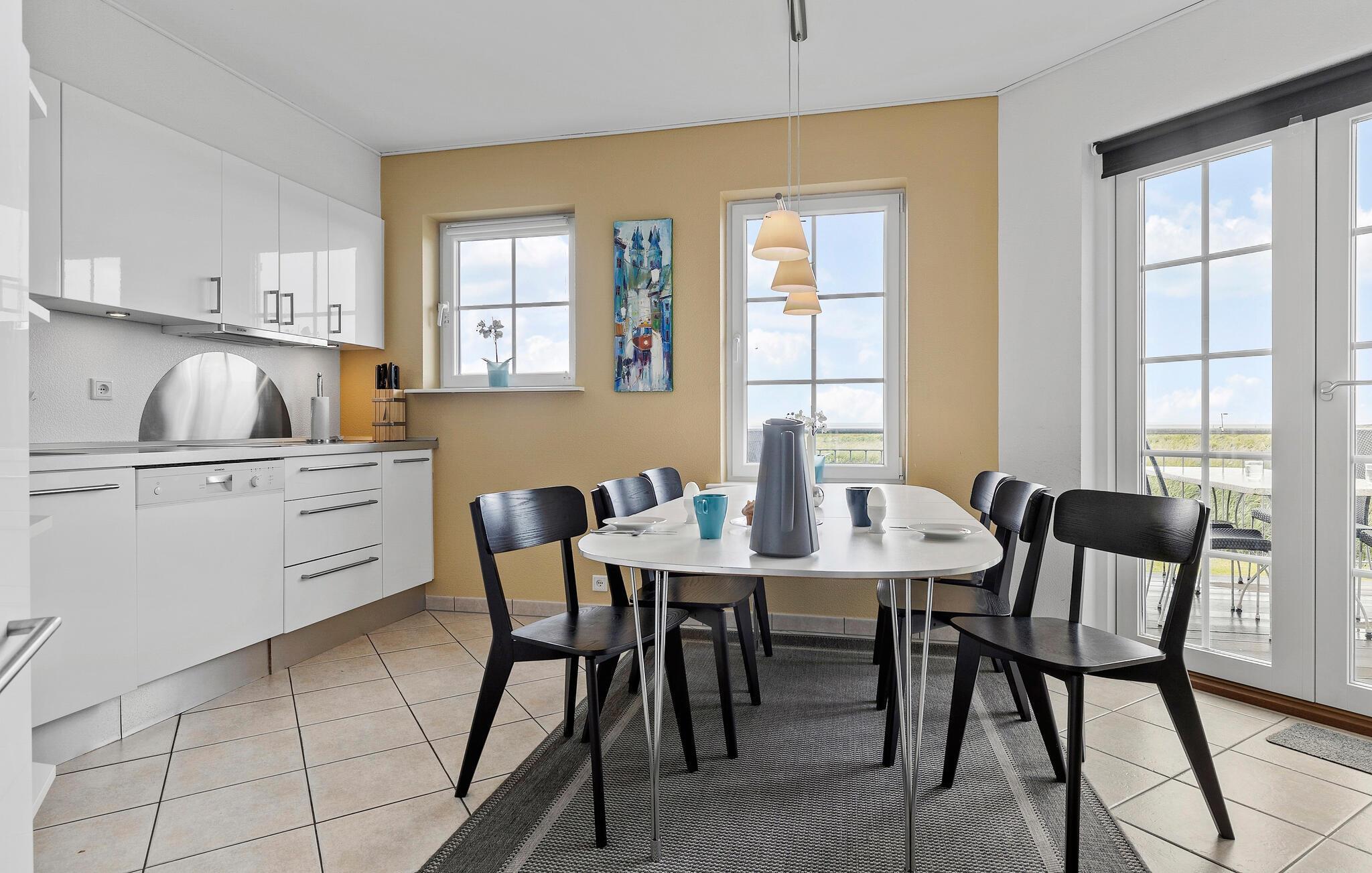 Når solen er fremme, kan I nyde en kop kaffe på en af de to altaner, som hører til hver etage og nyde udsigten til vandet bag det åbne grønne areal. I bor kun en lille gåtur fra sandstranden, så der er mulighed for mange små afstikkere ned til vandet i løbet af dagen. Glæd jer til friske dukkerter og rolige gåture. Hvis I trænger til at få varmen, når I vender tilbage til lejligheden, kan I forkæle jer selv med en tur i sauna eller spa, ligesom I kan sætte jer foran brændeovnen med en kop te.
