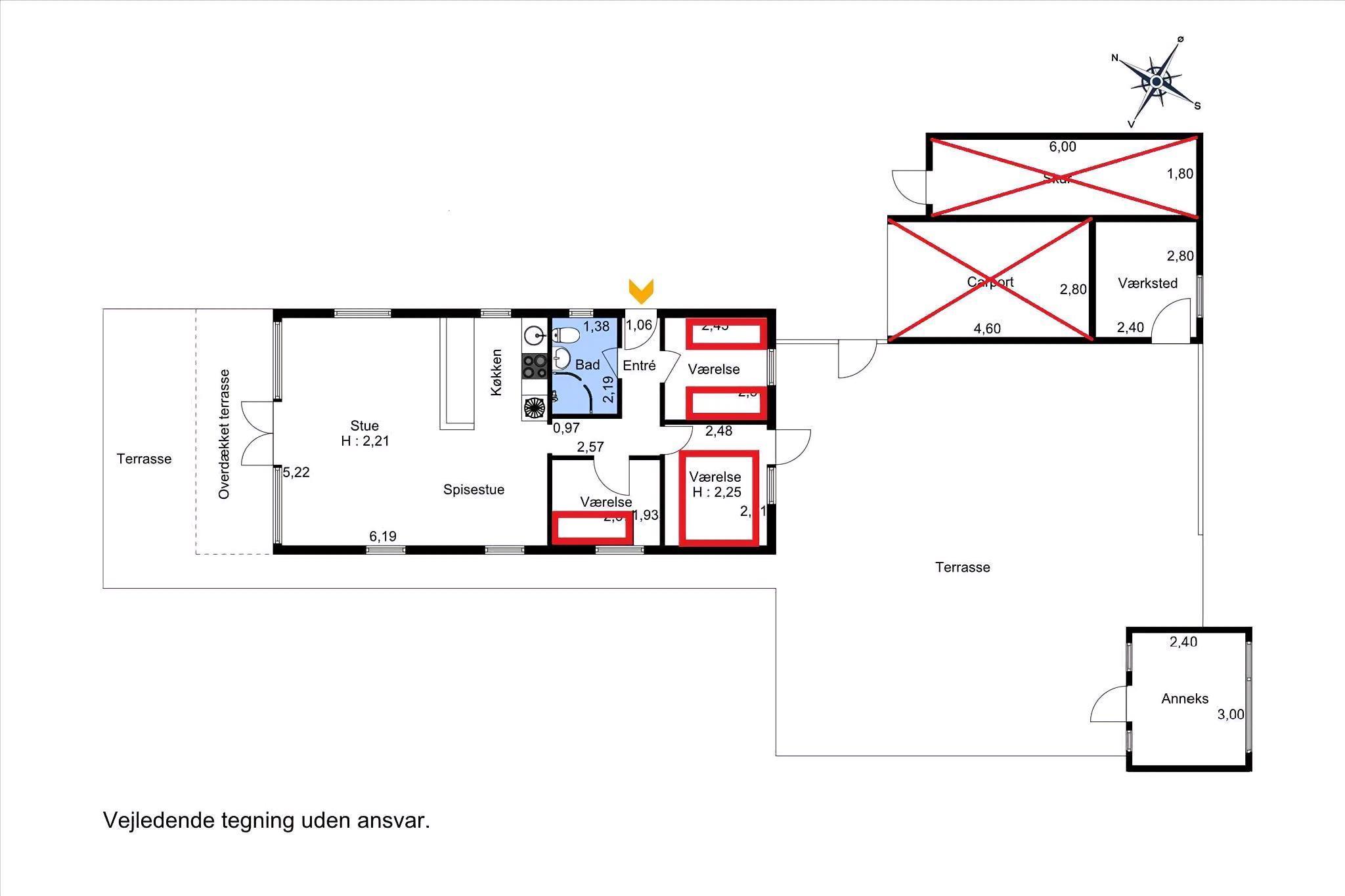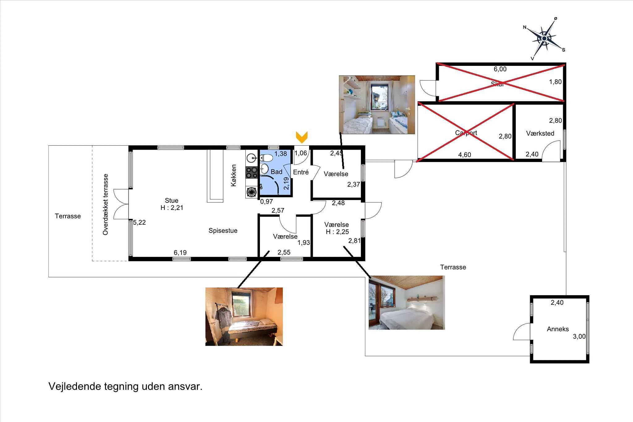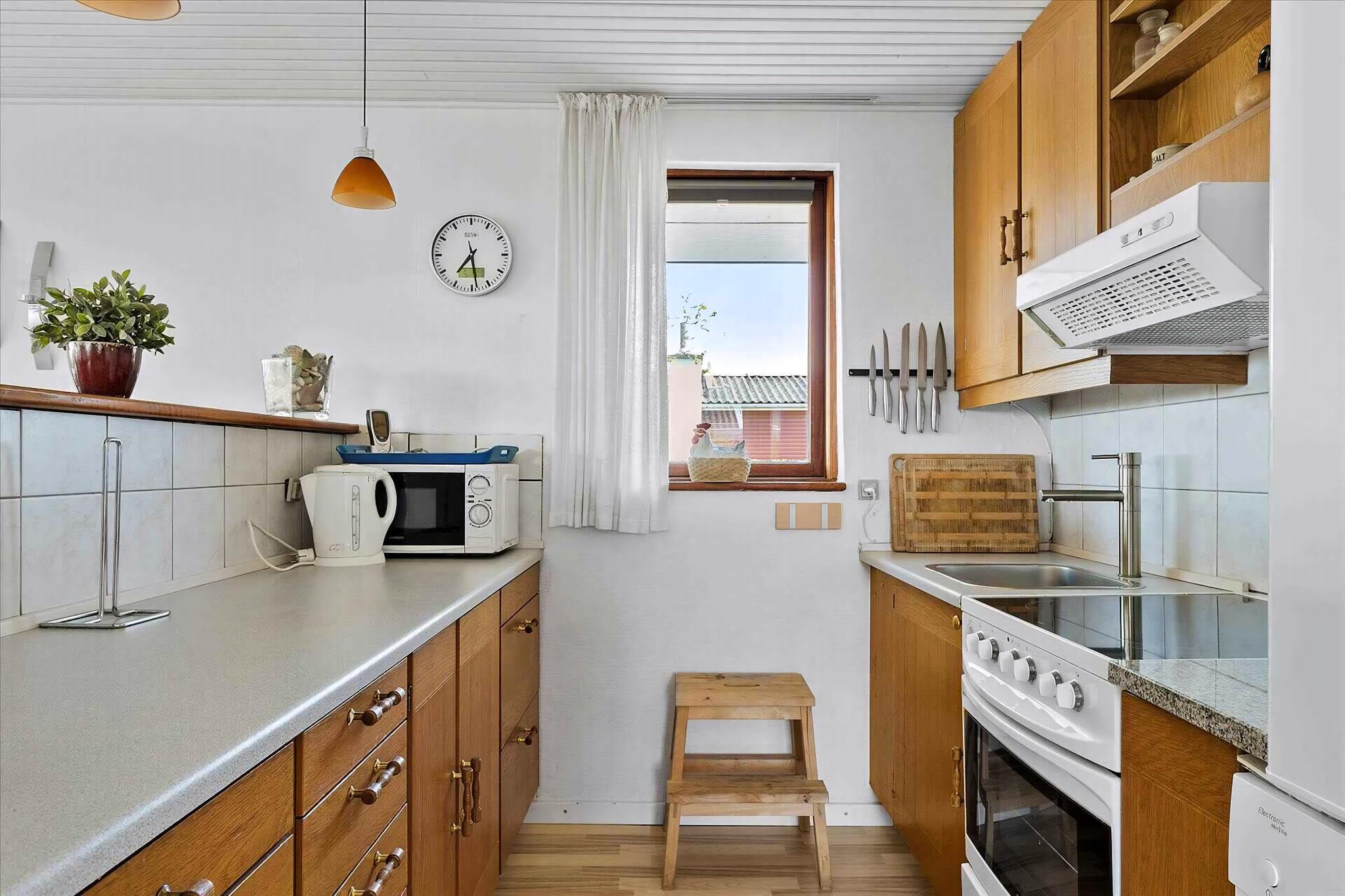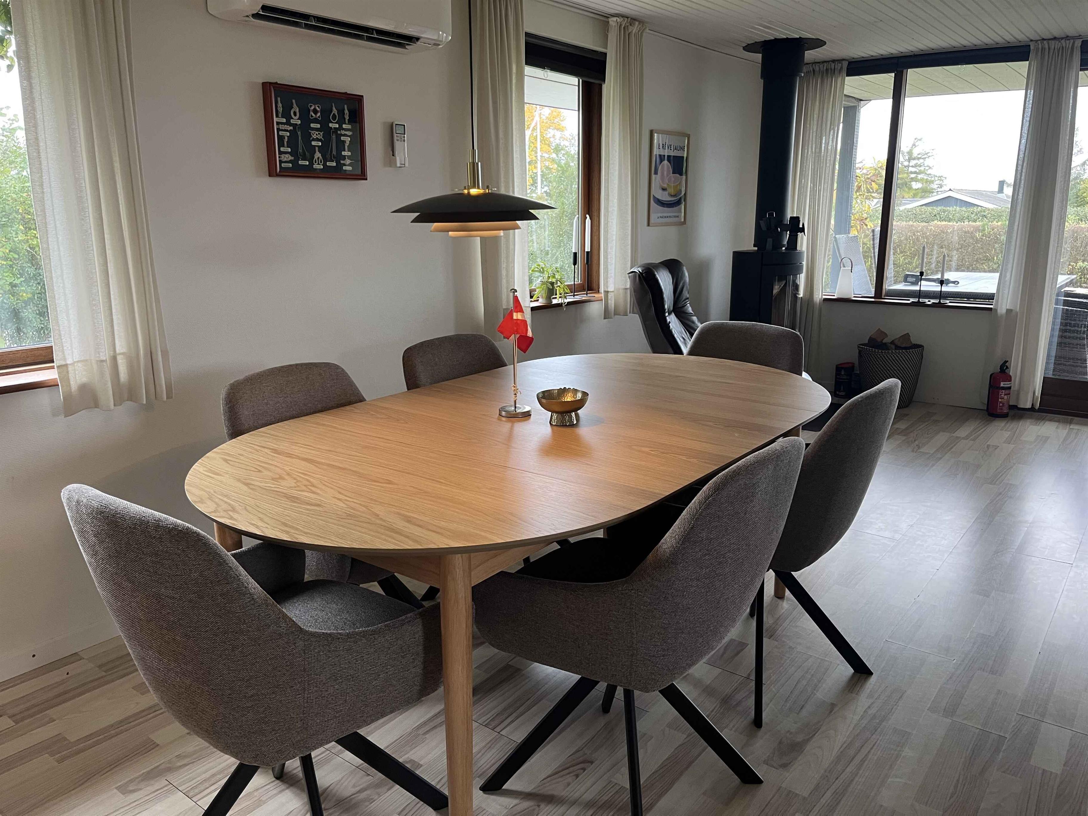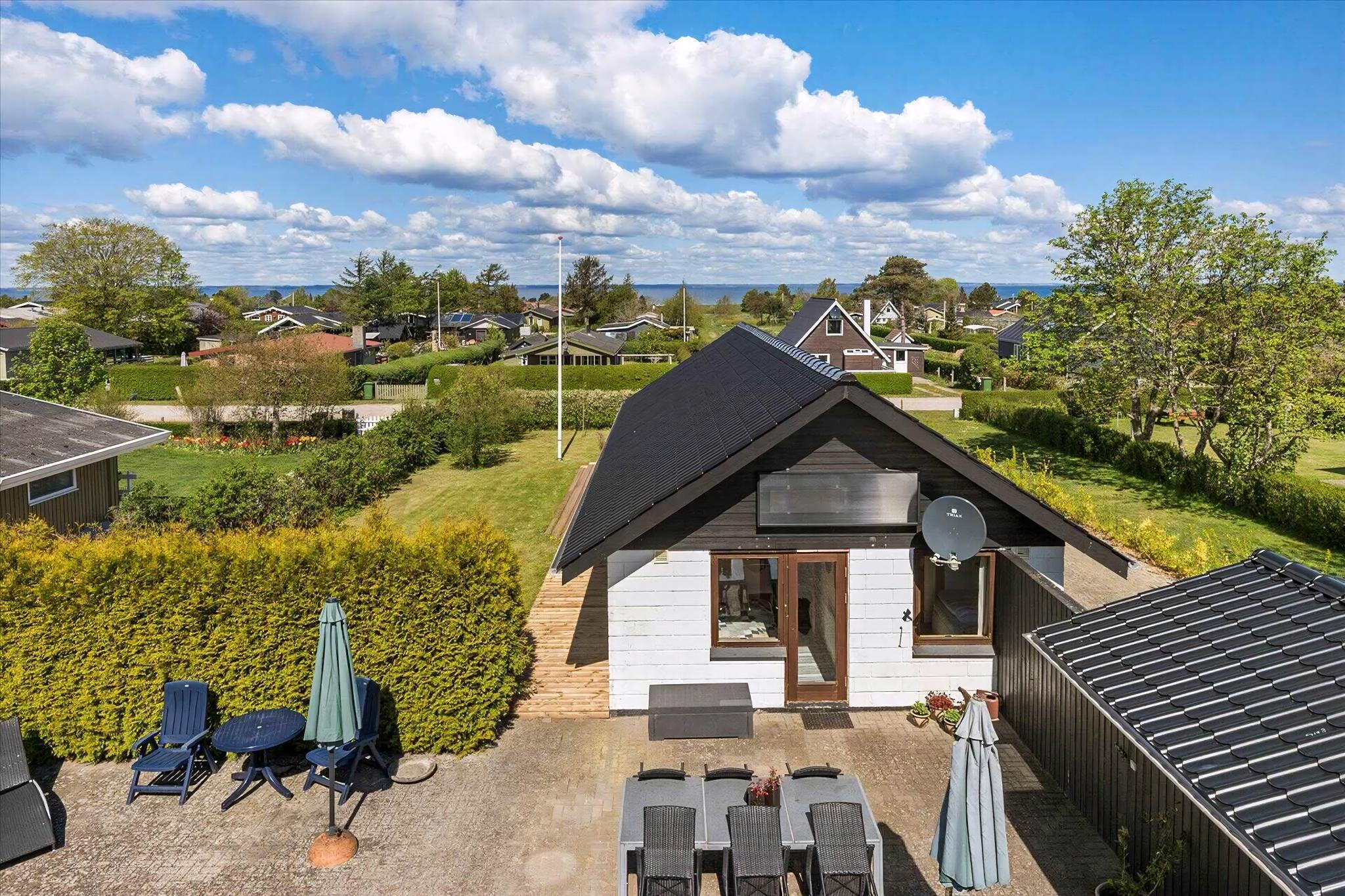 I et roligt ferieområde, ikke langt fra børnevenlig badestrand med badebro, ligger dette dejlige sommerhus med havudsigt fra såvel hus som grund. Huset er indrettet med 3 soveværelser. Sommerhuset egner sig til 5 personer. Ferieboligen er på 70 m² og er bygget i 1970. Ferieboligen er udstyret med både brændeovn og energibesparende varmepumpe. Ferieboligen har vaskemaskine. Til de små er der 1 stk. barnestol. Der er badeværelse med bruseniche og toilet. Der er gulvvarme på badeværelset. Der er i alt 3 soveværelser. Sovepladserne fordeler sig på: 2 sovepladser i dobbeltseng. 3 sovepladser i enkeltsenge. Derudover er der 1 stk. weekendseng. Ferieboligen er beliggende på en 721 m² stor havegrund. Grunden er indhegnet. Der er 675 m til havet. Nærmeste forretning er beliggende i en afstand af 8000 m. Ferieboligen har gode terrasser på begge sider af huset. Bag huset er en skøn ugenert og solrig terrasse, på forsiden en mindre og delvist overdækket terrasse. På lune aftener sørger en udendørs pejs for hyggelig stemning. Grill til rådighed. Parkering ved ferieboligen. Køkkenet er udstyret med køleskab med frysekapacitet på 30 liter. Der er 4 keramiske kogeplader, varmluftovn, mikrobølgeovn, airfryer samt opvaskemaskine. I ferieboligen er der TV, Chromecast. Bluray-afspiller. Stereoanlæg med radio og CD-afspiller og Bluetooth højttaler. Der er 14 danske kanaler. 5 svenske kanaler. 7 norske kanaler. 10 tyske kanaler. 3 engelsksprogede kanaler Der er trådløst internet til rådighed.