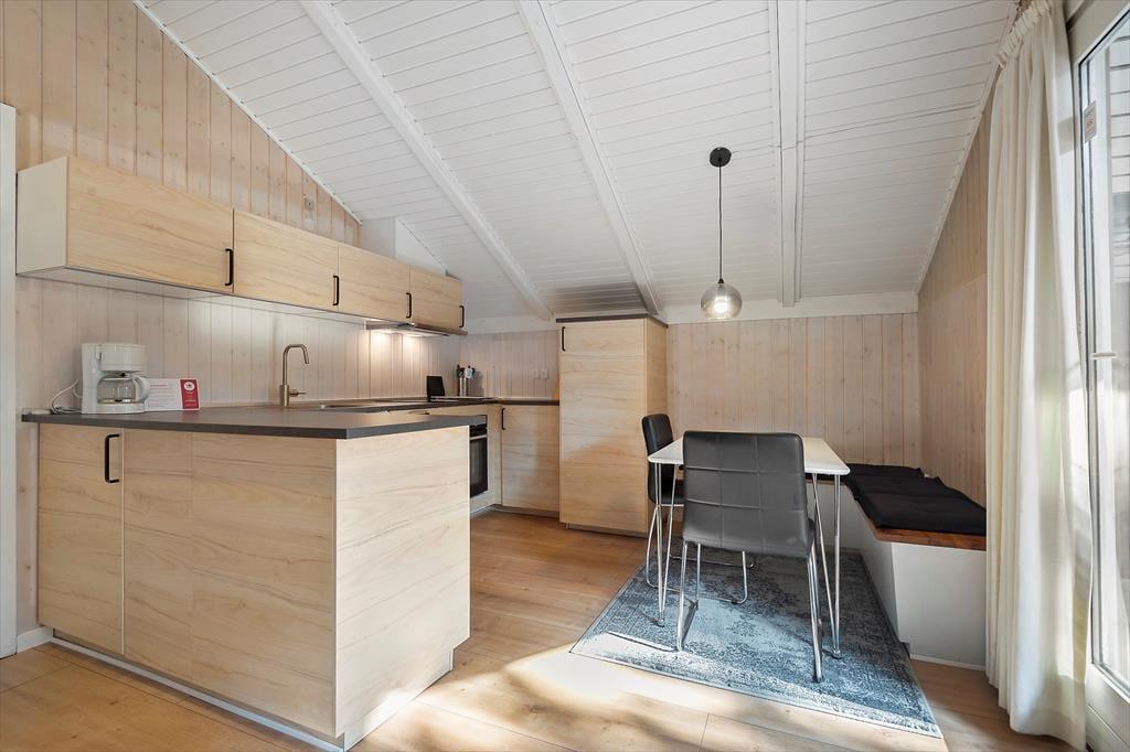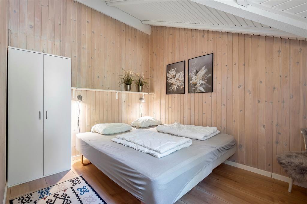 Der er tale om en pæn og velholdt feriebolig, som byder på 81 velindrettede kvadratmeter og en fornuftig planløsning, så huset kan nemt rumme seks personer. Atmosfæren er rar og indbydende i alle rum og ikke mindst i stuen, hvor brændeovnen kan skrue op for både varmen og hyggestemningen. I stuen er der god plads til at slænge sig i sofaafdelingen og samles til brætspil og snacks omkring spisebordet, og i den åbne køkkenafdeling kan I sagtens stå flere kokke, hvis I vil være fælles om madlavningen. To soveværelser er indrettet med dobbeltseng og det tredje med to enkeltsenge, og derudover består planløsningen af et badeværelse med tilstødende sauna.