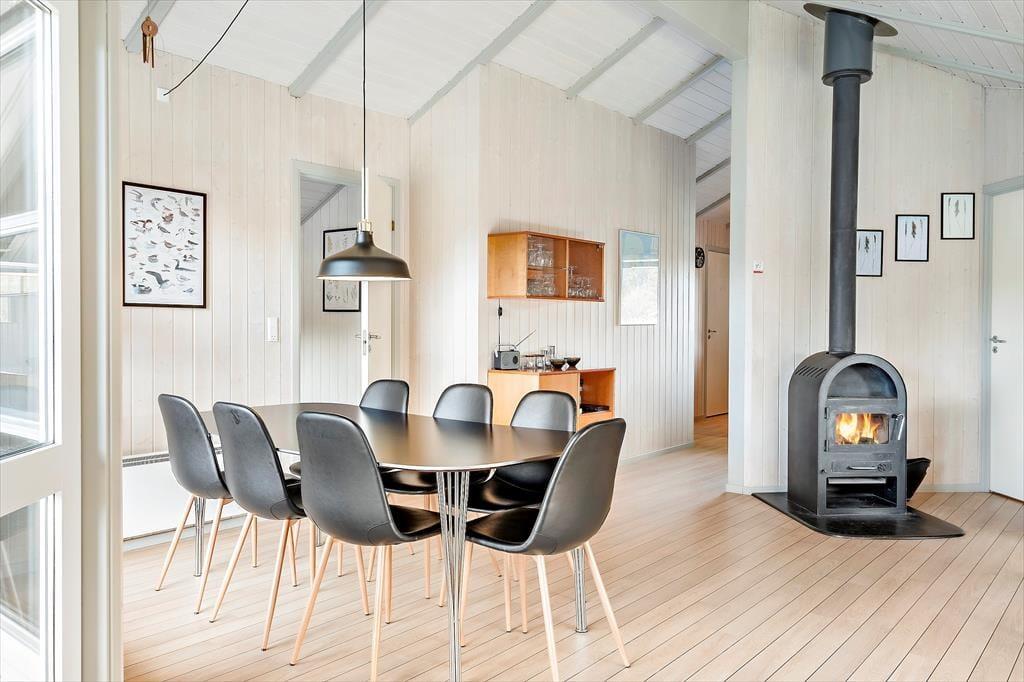 Inden døre er kvadratmeterne fornuftigt udnyttet, og planløsningen er gennemtænkt. 3 soveværelse er placeret i hver sin ende af huset, og i alt kan de rumme 6 personer. Når I er mange samlet, er det for øvrigt rart, at et gæstetoilet supplerer badeværelset, som er udstyret med vaskemaskine og tørretumbler såvel som spabad og sauna. Samlingspunktet i sommerhuset er en dejlig stue med loft til kip, brændeovn og åben forbindelse til et veludstyret køkken. Uanset om I står og forbereder aftensmaden i køkkenafdelingen eller slapper af i sofaerne, har I udsigt gennem vinduerne til det smukke hede landskab, der omgiver sommerhuset – og sådan et bagtæppe er bestemt med til at understrege den gode feriestemning.