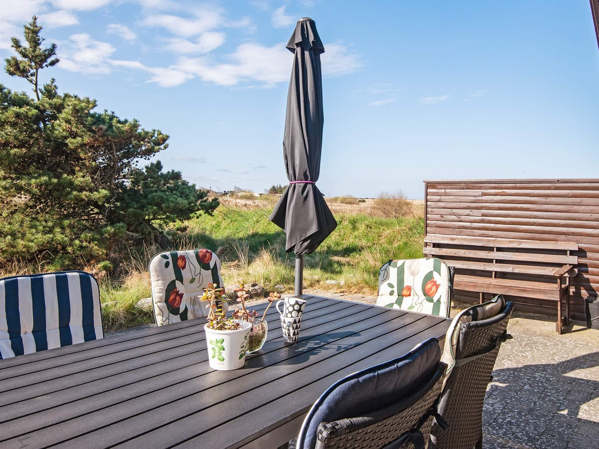 Og: Terrasse, el-varme, luft/luft varmepumpe, legeredskaber, naturgrund 2747 m2, personlig møblering, udsigt over klitter, ikke-ryger hus