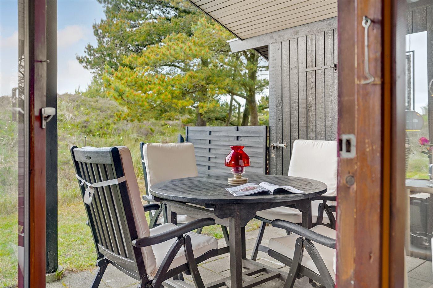 Ferieboligen er beliggende på en 2500 m² stor naturgrund. Der er 3400 m til havet. Der er 4000 m til Vadehavet. Nærmeste forretning er beliggende i en afstand af 4000 m. Der er en golfbane i en afstand af 10000 m. Til ferieboligen hører åbent terrasseareal. Desuden er der overdækket terrasse. Der er redskabsrum. Grill til rådighed. Parkering ved ferieboligen.