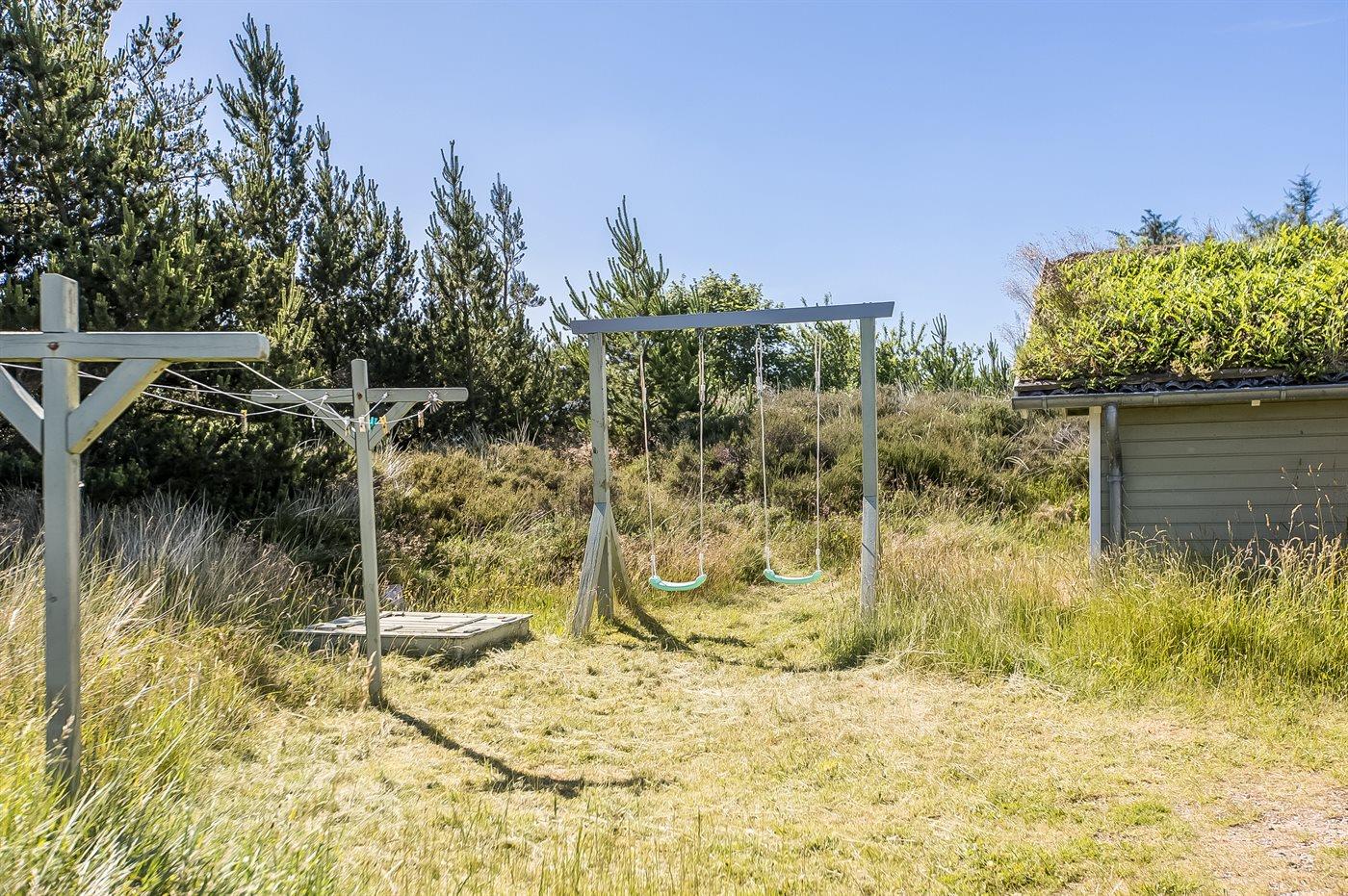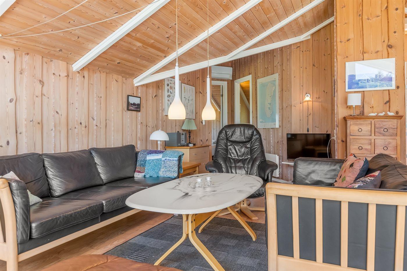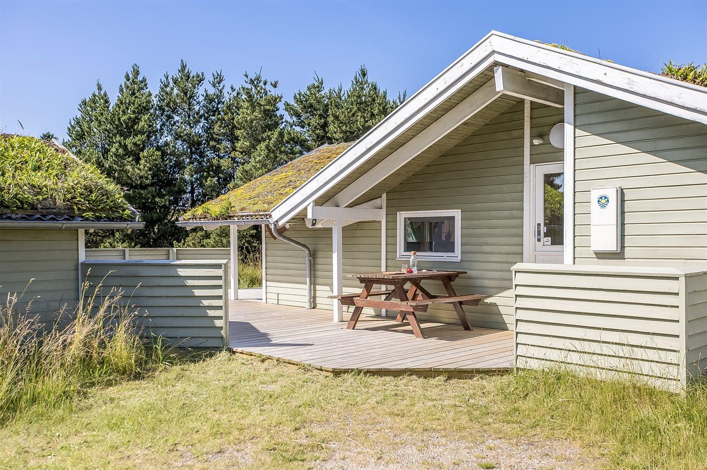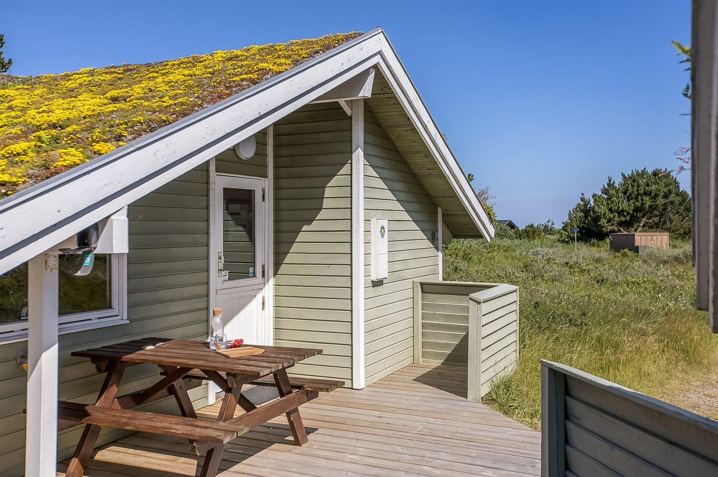 På en lille bakke med skøn udsigt over de fredede arealer ligger dette flotte sommerhus i træ, bygget i 1991 og renoveret i 2016. Til huset hører stor, dejlig og til dels afskærmet terrasse med havemøbler. Indvendig er væggene beklædt med træ. Skønt badeværelse med gulvvarme, bruseniche, 2-pers. Spa, vaskemaskine og tørretumbler. Desuden findes der et gæstetoilet, også med gulvvarme. Det dejlige lyse køkken, som ligger i forbindelse med stuen indeholder bl.a. opvaskemaskine, mikrobølgeovn og fryser. Den store, lyse opholdsstue med panoramavinduer, hvorfra der er udsigt over den flotte natur, er udstyret med brændeovn, stereoanlæg, DVD-afspiller samt TV med parabolantenne. Husets sovepladser fordeler sig på 3 soveværelser, 2 med dobbeltseng og 1 med 2 enkeltsenge. Desuden forefindes gratis trådløs internetforbindelse (egen computer medbringes), ekstra TV, barneseng og barnestol. Der er installeret energibesparende varmepumpe. På grunden er der sandkasse og gynge til børnene. Huset ligger i et naturskønt, kuperet hedeområde i Bolilmark, hvorfra en gang/cykelsti fører til Lakolk og stranden.