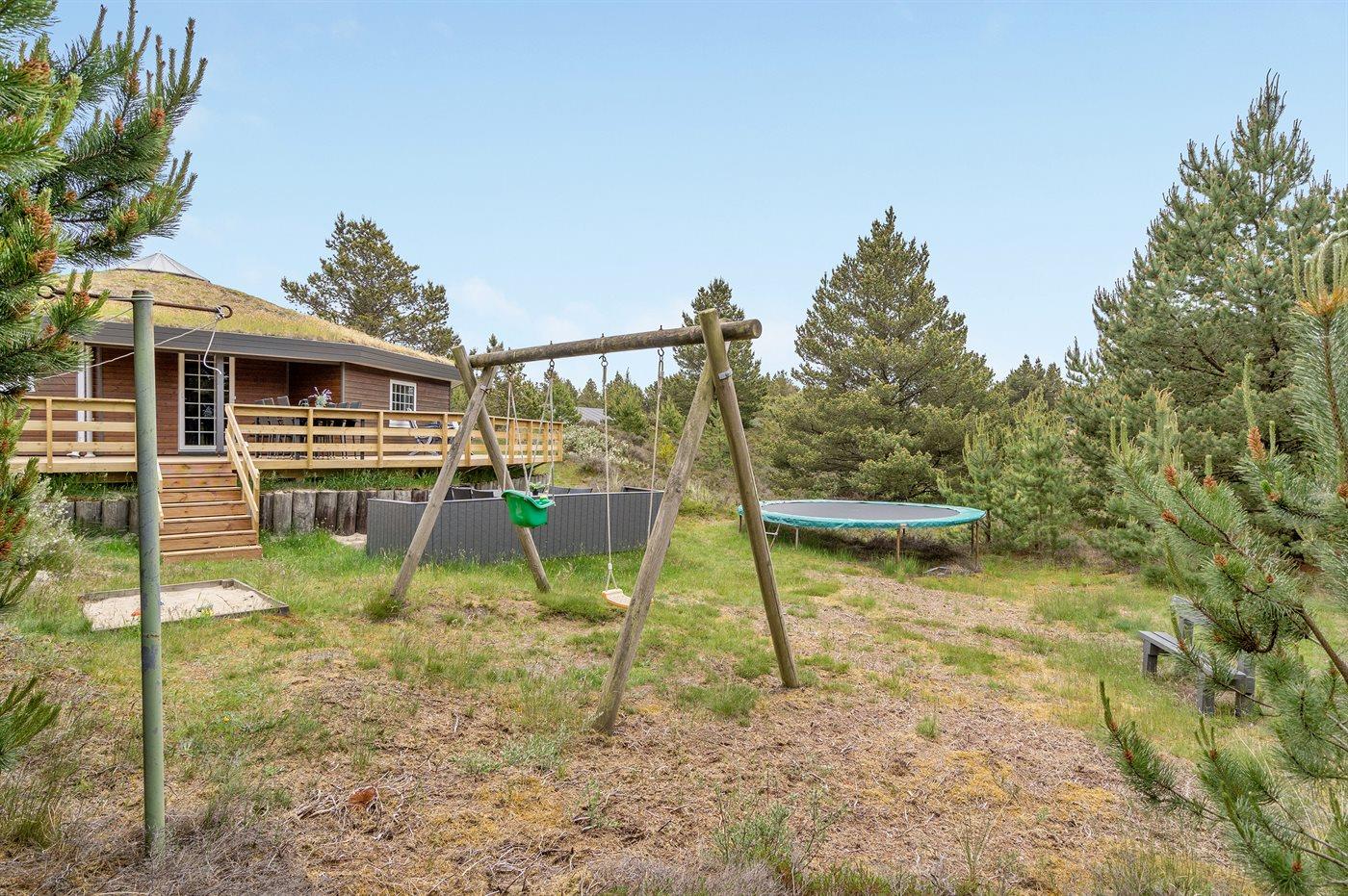 Ferieboligen er beliggende på en 2500 m² stor Der er 3100 m til havet. Nærmeste forretning er beliggende i en afstand af 3400 m. Til ferieboligen hører åbent terrasseareal. Desuden er der overdækket terrasse. Der er redskabsrum. Gynge. Sandkasse. Parkering ved ferieboligen.