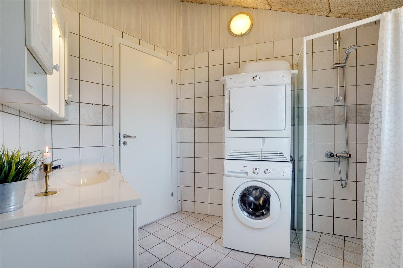 Der er 1 badeværelse med bruser og 1 toilet.. Der er gulvvarme på 1 badeværelse. I saunaen er der mulighed for afslapning.