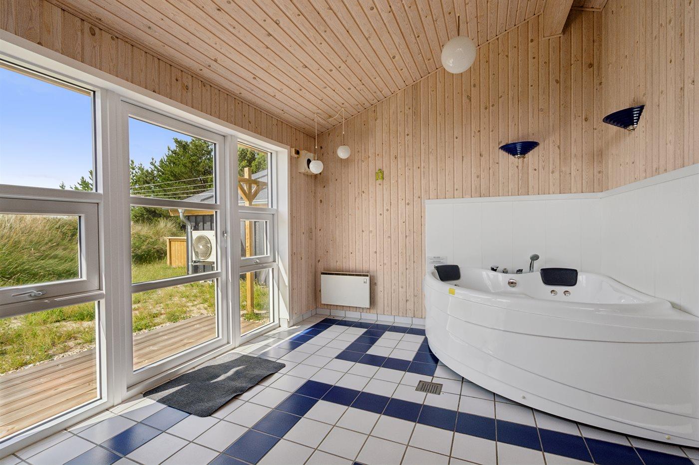 Der er 2 badeværelser med bruser og 2 toiletter. Der er gulvvarme på 1 badeværelse. I saunaen er der mulighed for afslapning.