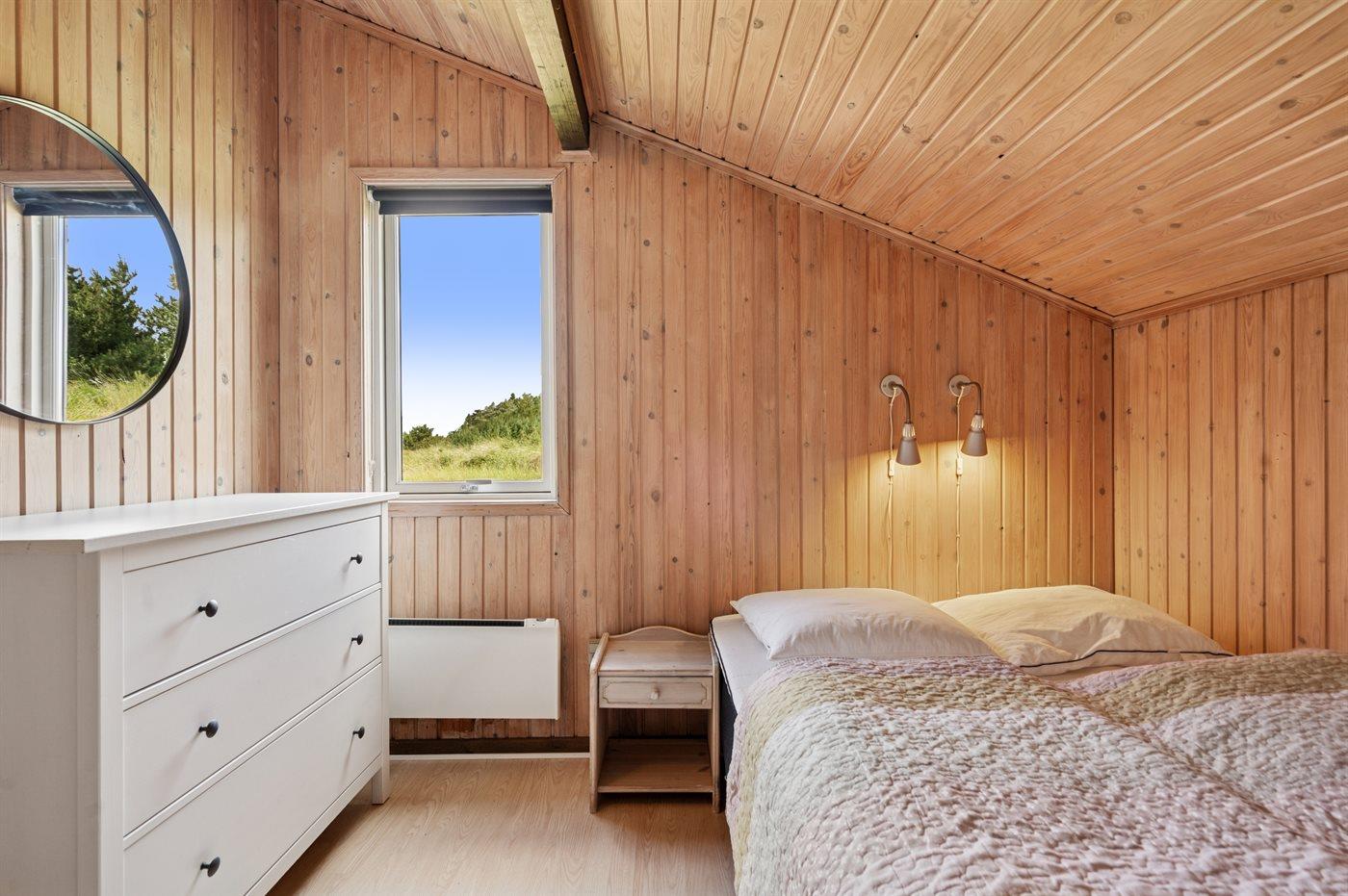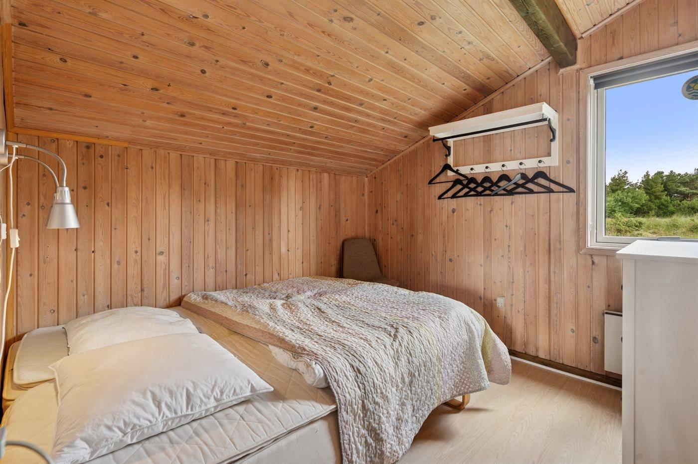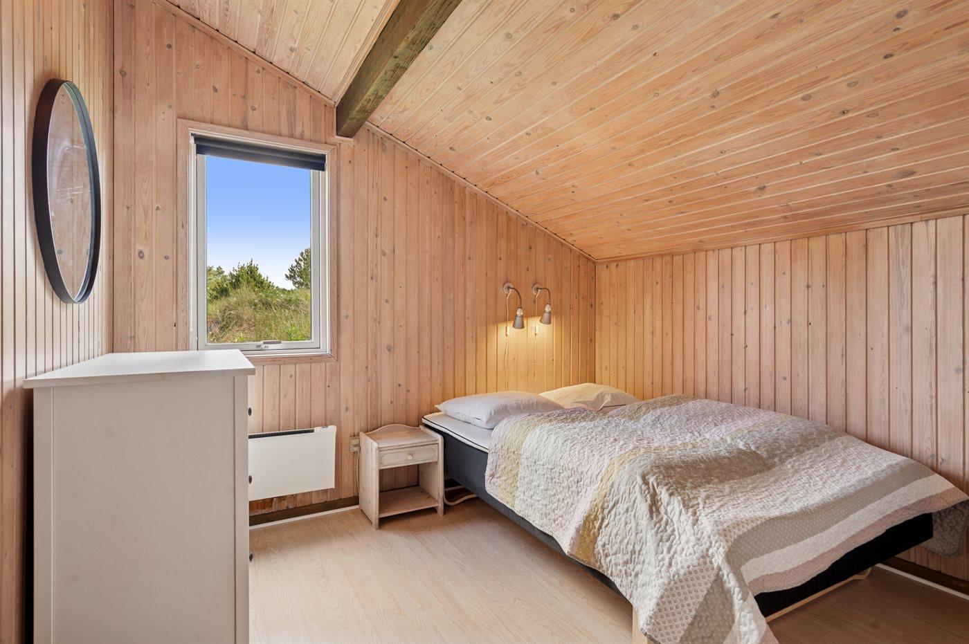 Der er i alt 4 soveværelser. Sovepladserne fordeler sig på: 6 sovepladser i dobbeltsenge. 1 soveplads i enkeltseng.1 soveplads i køjeseng. Derudover er der 1 stk. barneseng.