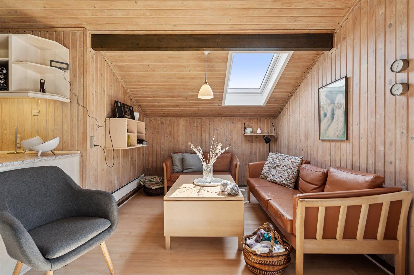 Dette skønne sommerhus ligger på en stor og dejlig grund, som grænser op til de fredede og naturskønne arealer. Til huset hører 2 flotte terrasser; 1 åben og 1 delvis overdækket med flot udsigt over naturen. Indvendigt er huset lyst og venligt indrettet.