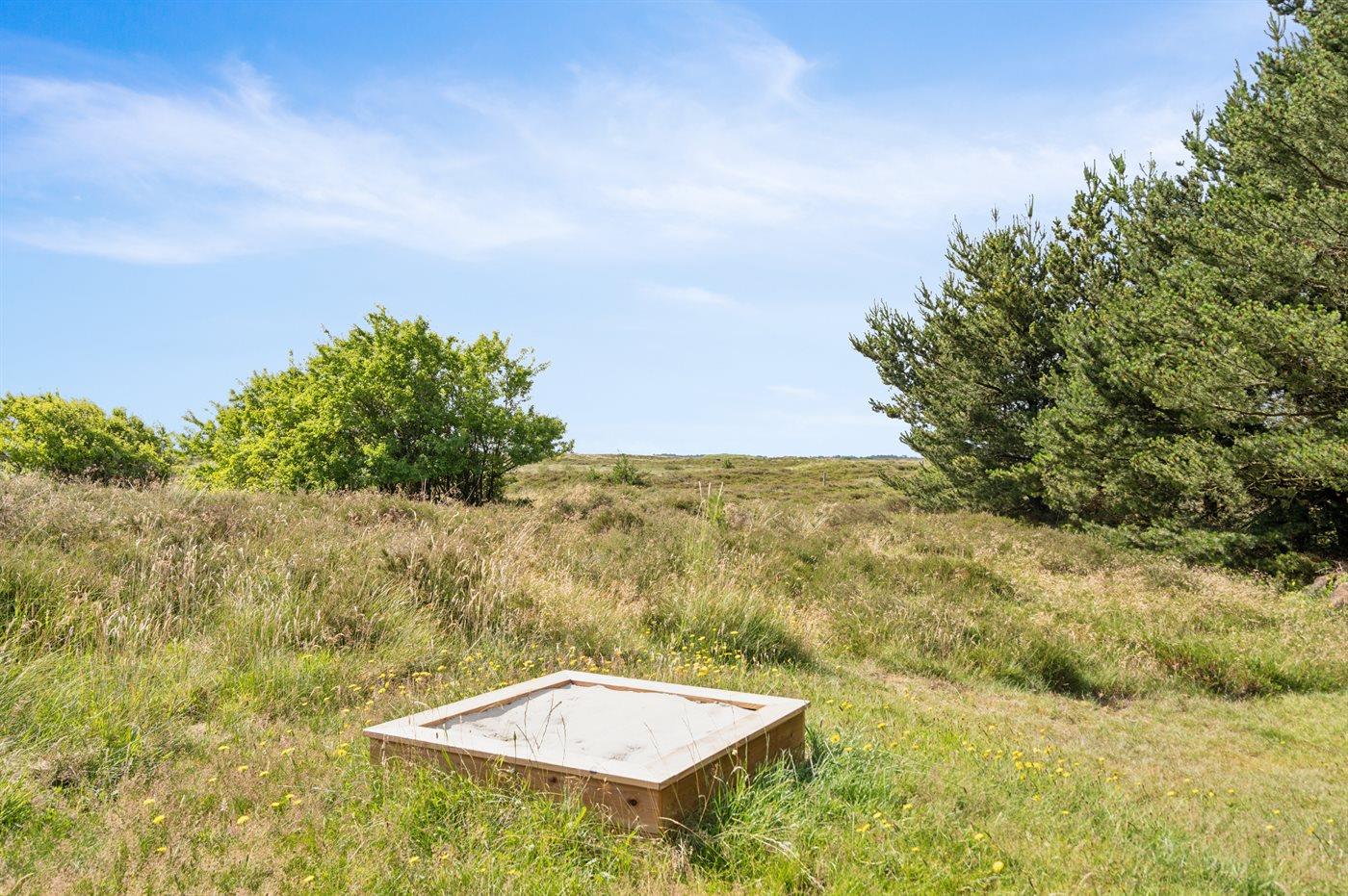 Ferieboligen er beliggende på en 2500 m² stor naturgrund. Der er 2000 m til havet. Nærmeste forretning er beliggende i en afstand af 5300 m. Heraf i alt 30 m² lukket terrasse. Der er redskabsrum. Sandkasse. Parkering ved ferieboligen.