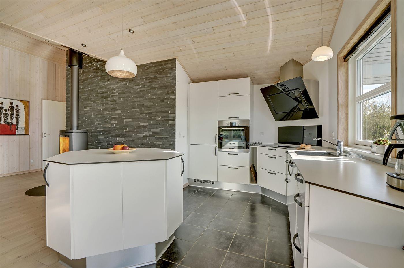 Køkkenet er udstyret med 1 køleskab. Der er 4 induktionskogeplader, varmluftovn, mikrobølgeovn samt opvaskemaskine Der er gulvvarme i køkkenet.