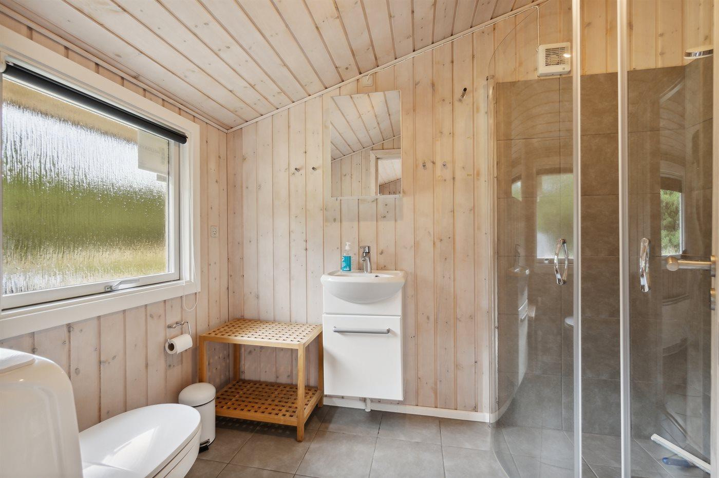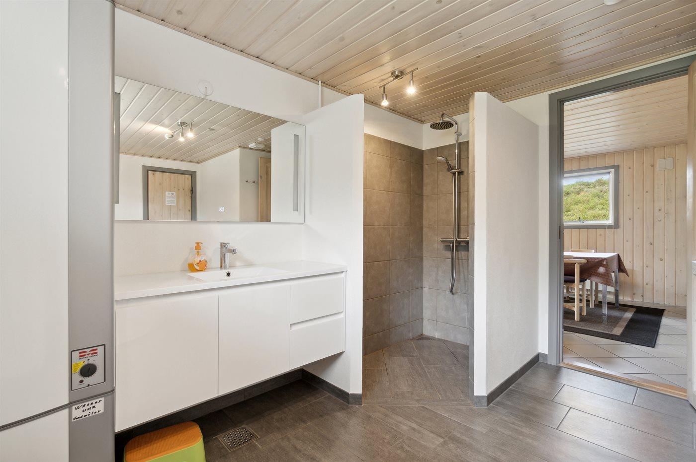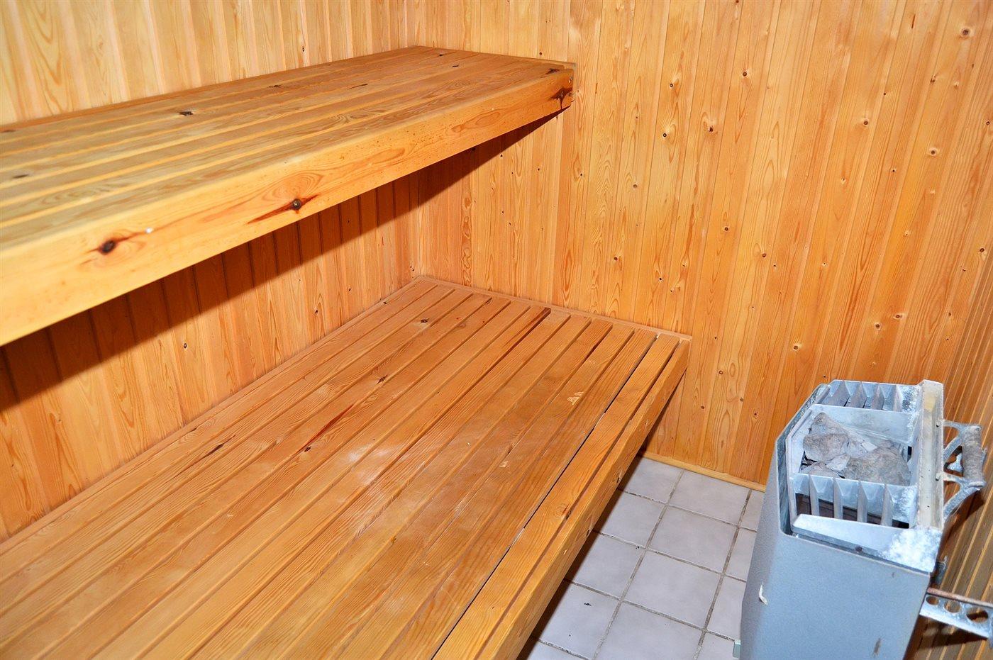 Der er 2 badeværelser med bruseniche og 2 toiletter. Der er gulvvarme på 2 badeværelser. I saunaen er der mulighed for afslapning.