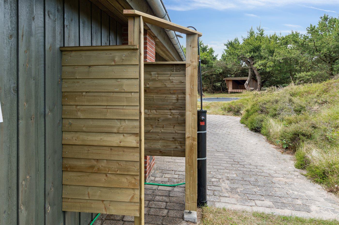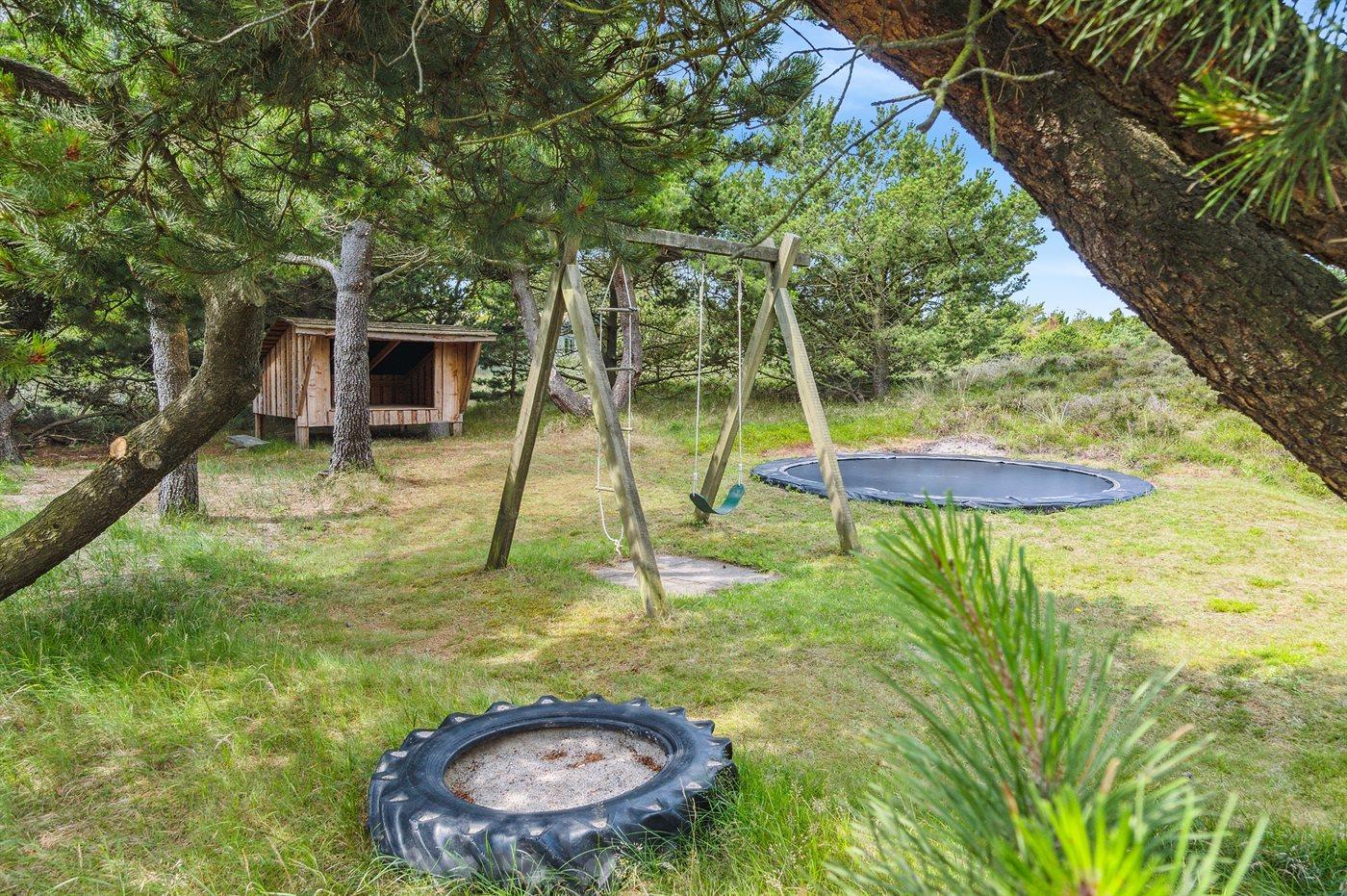 Ferieboligen er beliggende på en 2583 m² stor naturgrund. Der er 3100 m til havet. Nærmeste forretning er beliggende i en afstand af 4100 m. Til ferieboligen hører 50 m² terrasseareal. Desuden er der 10 m² overdækket terrasse. Der er redskabsrum. Gynge. Sandkasse. Parkering ved ferieboligen.