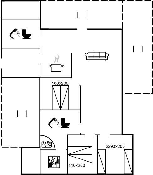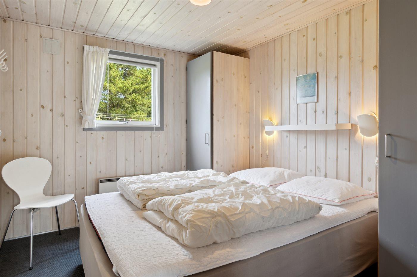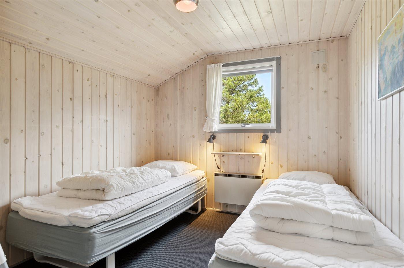 Der er i alt 3 soveværelser. Sovepladserne fordeler sig på: 4 sovepladser i dobbeltsenge. 2 sovepladser i enkeltsenge. 2 sovepladser på madrasser. 2 af disse sovepladser befinder sig på husets hems. Derudover er der 1 stk. barneseng.