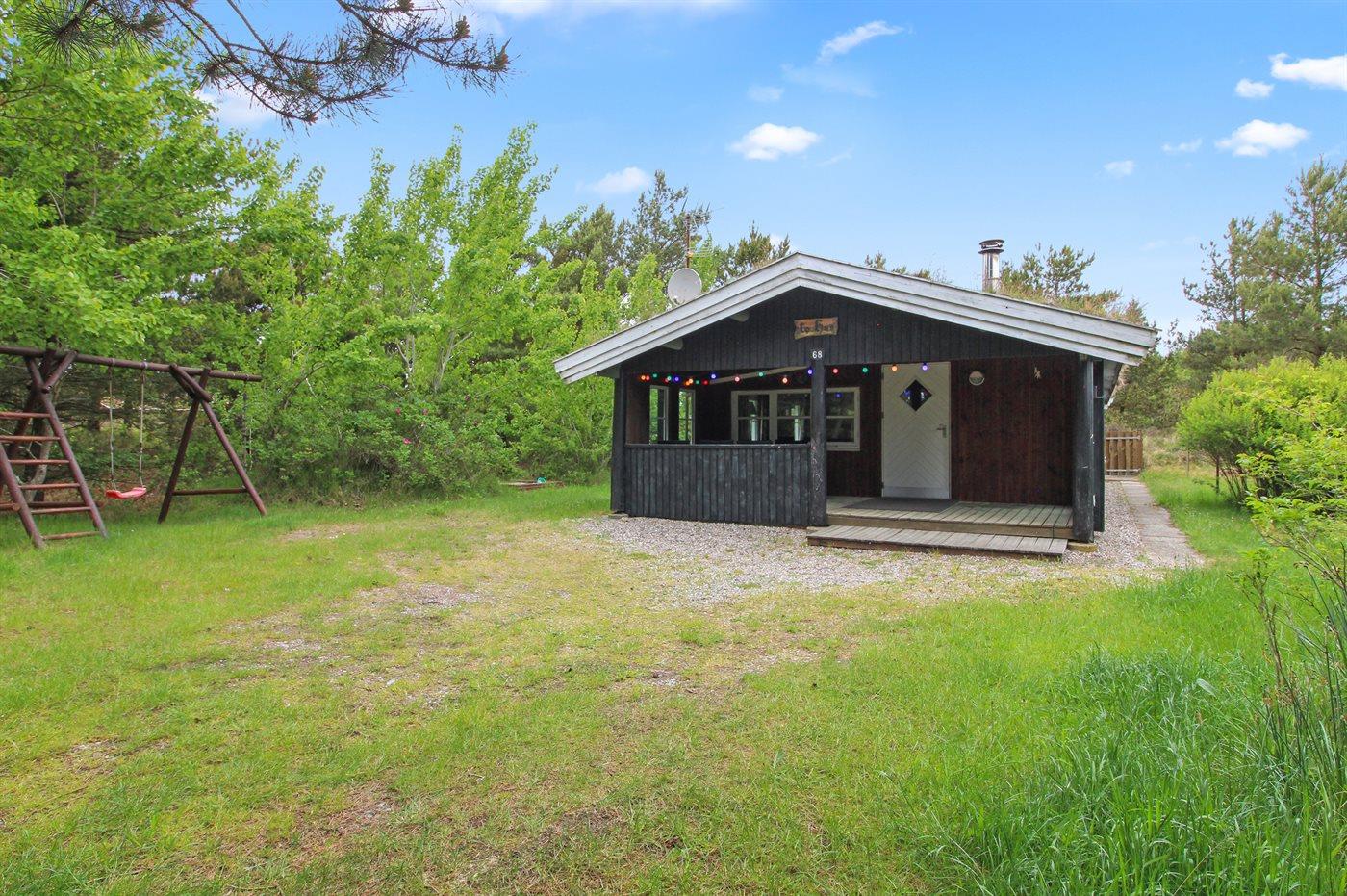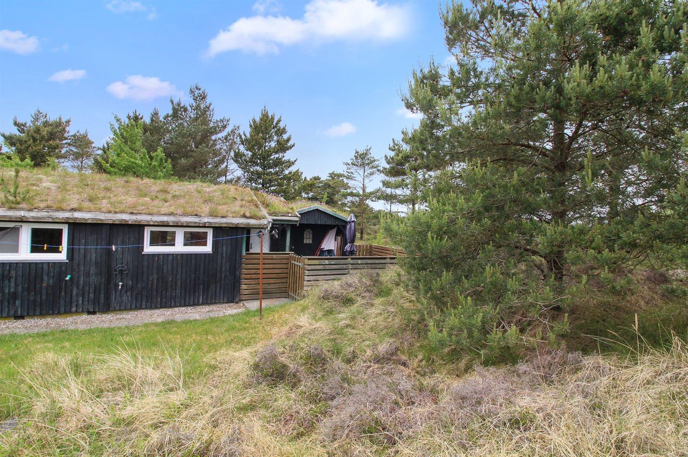 sommerhus i træ, bygget 1977 og moderniseret 2000, roligt beliggende på en flot naturgrund, tæt på sti til stranden. Til huset hører såvel åbent som overdækket terrasseareal med havemøbler. Badeværelse med bruser. Køkkenet er bl. a. udstyret med fryser, varmluftovn og mikrobølgeovn. Opholdsstuen er indrettet med TV med parabol (digital), stereoanlæg med CD-afspiller samt brændeovn. Husets sovepladser fordeler sig på 2 værelser med hver 2 enkeltsenge. Til de mindste feriegæster er der sandkasse og gynge.