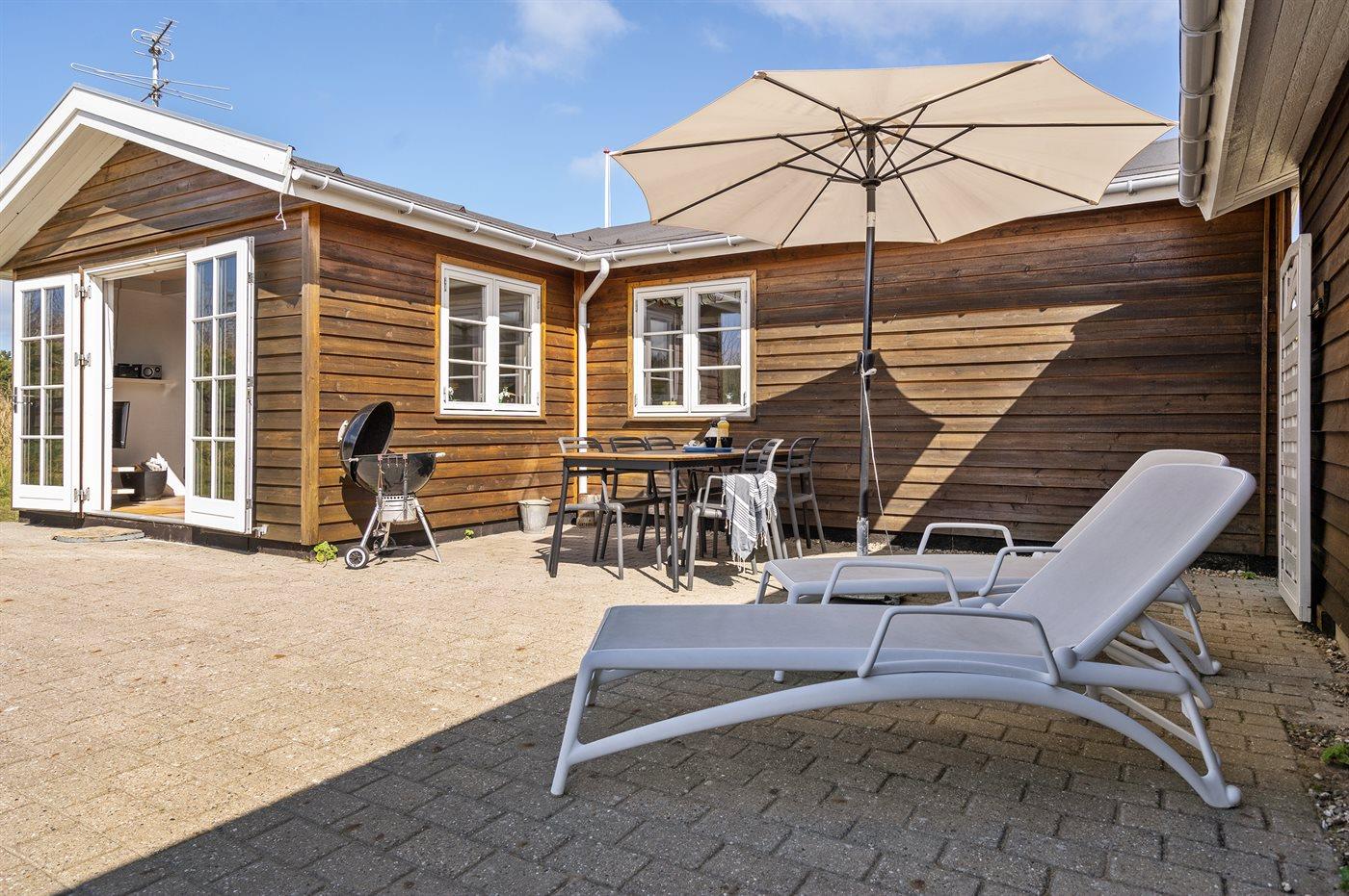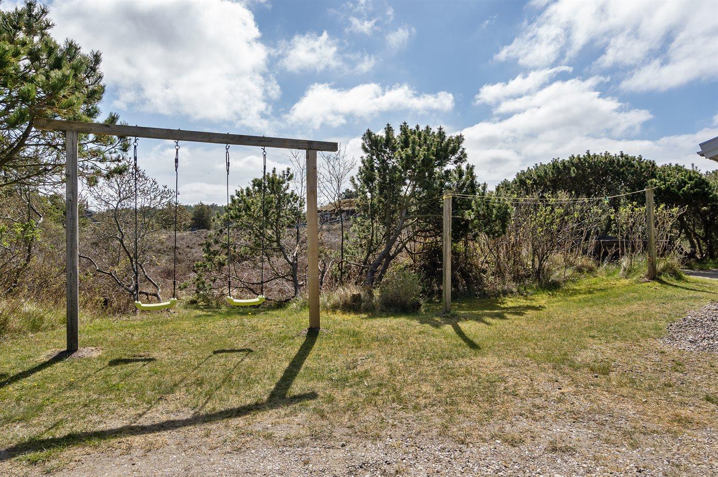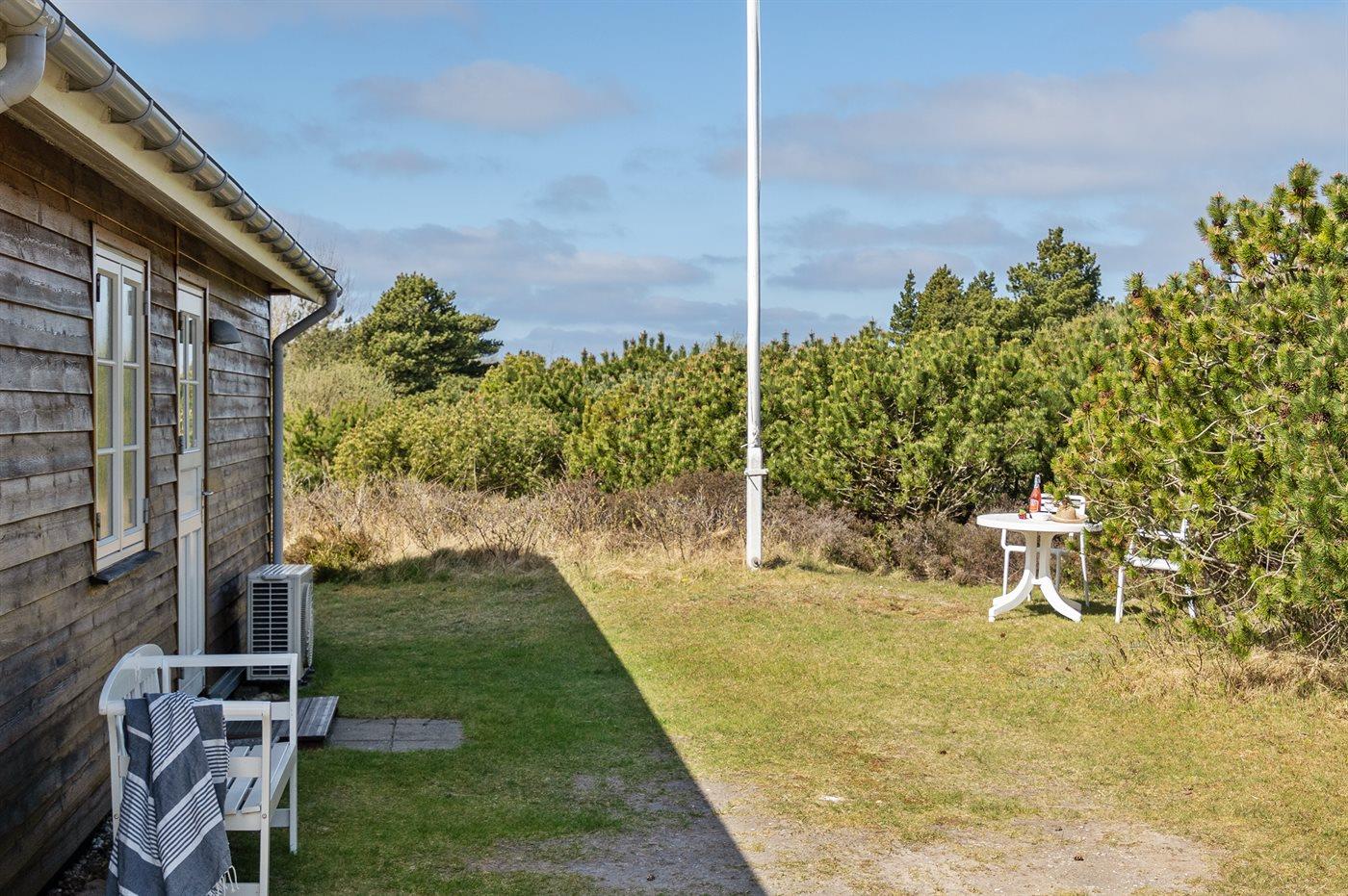 Ferieboligen er beliggende på en 2550 m² stor naturgrund. Der er 1900 m til havet. Nærmeste forretning er beliggende i en afstand af 1400 m. Til ferieboligen hører 100 m² terrasseareal. Desuden er der 3 m² overdækket terrasse. Terrassevarmer. Gynge. Sandkasse. Parkering ved ferieboligen.